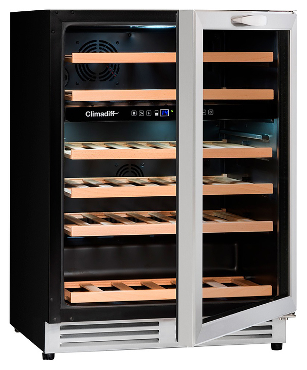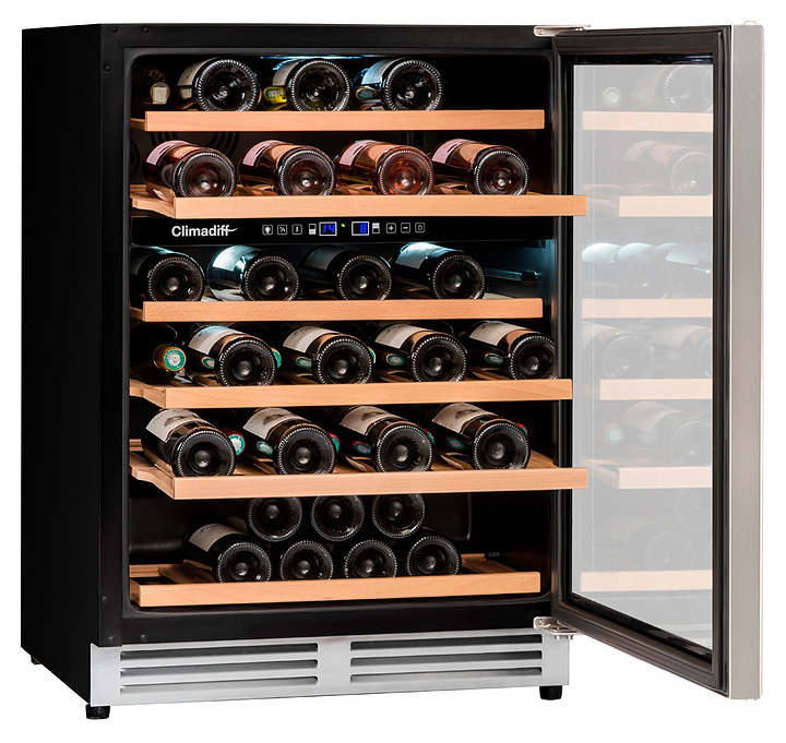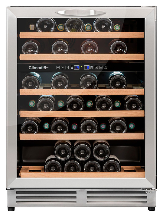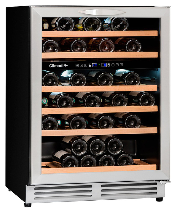 Винный шкаф Climadiff CBU51D1X предназначен для кратковременного хранения вина при определенном уровне влажности и температуры в ресторанах, специализированных магазинах, отелях, подсобных складских помещениях, в частных домах или квартирах и подготовки вина к подаче на стол. Модель оснащена сенсорным цифровым дисплеем, отключаемой внутренней подсветкой и 4 регулируемыми по высоте ножками. Дверь выполнена из двойного закаленного стекла с защитой от УФ-лучей, рамка дверцы - из нержавеющей стали, полки - из бука.