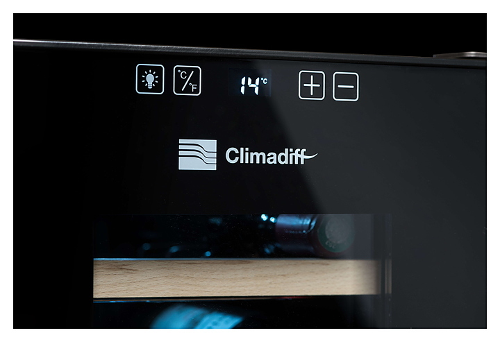 Винный шкаф Climadiff CC18 предназначен для хранения вина при определенном уровне влажности и температуры в ресторанах, специализированных магазинах, отелях, подсобных складских помещениях, в частных домах или квартирах. Модель оснащена сенсорным цифровым дисплеем и подсветкой.