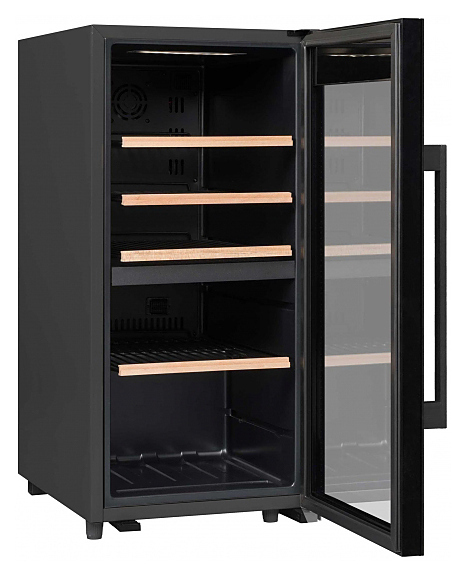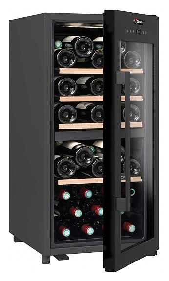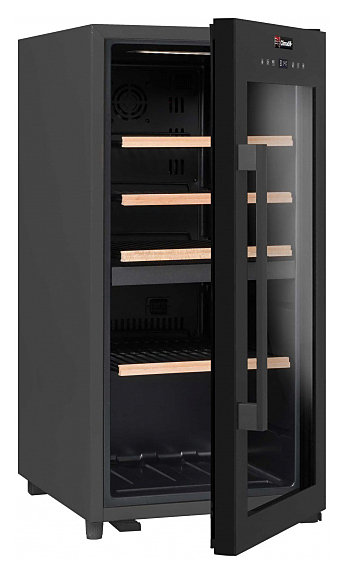 Винный шкаф Climadiff CD41B1 предназначен для кратковременного хранения вина при определенном уровне влажности и температуры в ресторанах, специализированных магазинах, отелях, подсобных складских помещениях, в частных домах или квартирах и подготовки вина к подаче на стол. Модель оснащена сенсорным цифровым дисплеем на двери, отключаемой внутренней подсветкой, системой антивибрации и 2 регулируемыми ножками. Дверь выполнена из двойного закаленного стекла с защитой от УФ-лучей, полки - из стальной проволоки с передней частью из дерева.