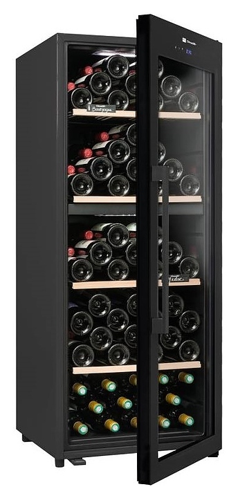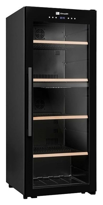 Винный шкаф Climadiff CLD115B1 предназначен для хранения вина при определенном уровне влажности и температуры в ресторанах, специализированных магазинах, отелях, подсобных складских помещениях, в частных домах или квартирах. Модель оснащена сенсорным цифровым дисплеем и 2 регулируемыми ножками. Полки выполнены из проволоки с фасадом из бука.