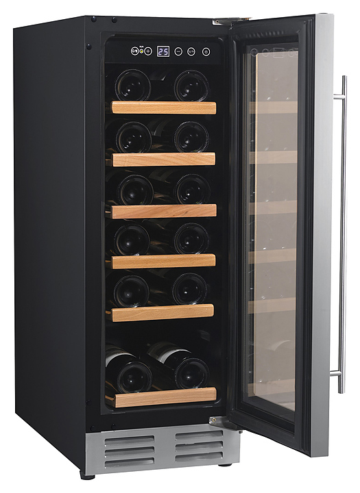 Винный шкаф Climadiff CLE18 предназначен для хранения вина при определенном уровне влажности и температуры в ресторанах, специализированных магазинах, отелях, подсобных складских помещениях, в частных домах или квартирах. Модель оснащена цифровым дисплеем с возможностью выбора температуры и принудительной вентиляцией. Корпус выполнен из металла, внутренняя облицовка - из ПВХ.