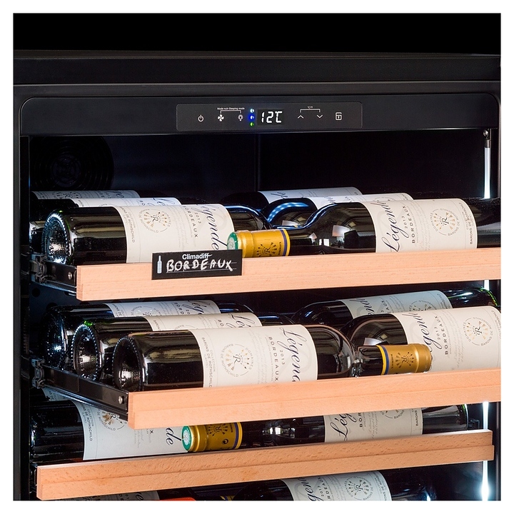 Винный шкаф Climadiff CPF100B1 предназначен для кратковременного хранения вина при определенном уровне влажности и температуры в ресторанах, специализированных магазинах, отелях, подсобных складских помещениях, в частных домах или квартирах и подготовки вина к подаче на стол. Модель оснащена сенсорным цифровым дисплеем, отключаемой внутренней подсветкой белого цвета и 2 транспортировояными роликами спереди, 2 регулируемыми по высоте ножками. Дверь выполнена из двойного закаленного стекла с защитой от УФ-лучей, полки - из натурального дерева с декором, ручка - из нержавеющей стали