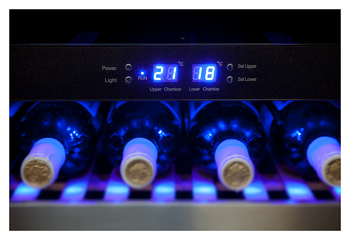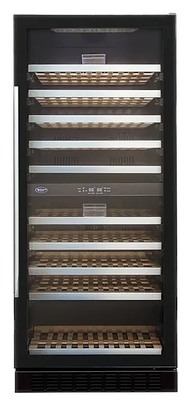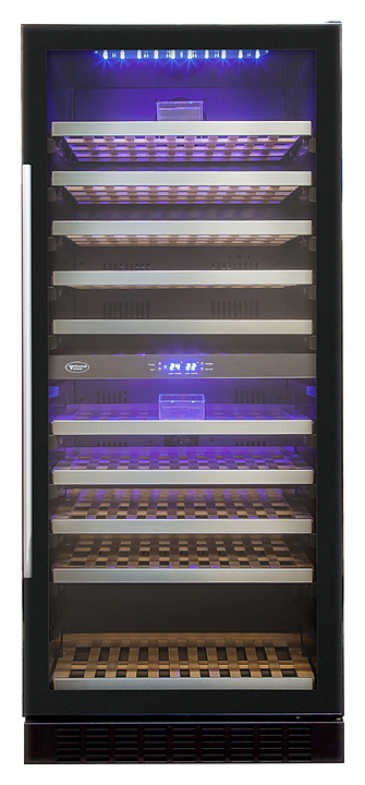Винный шкаф Cold Vine C110-KBT2 создает оптимальные условия для сохранения всех вкусовых свойств разливного вина. Модель оснащена встроенными вентиляторами в каждой зоне, 10 деревянными полками со стальным обрамлением и лаковым покрытием на металлических направляющих (все, кроме нижней) и голубой светодиодной подсветкой. Корпус выполнен из окрашенной в черный цвет стали, дверь в черной раме - из тонированного прозрачного тройного стекла с УФ-фильтром.