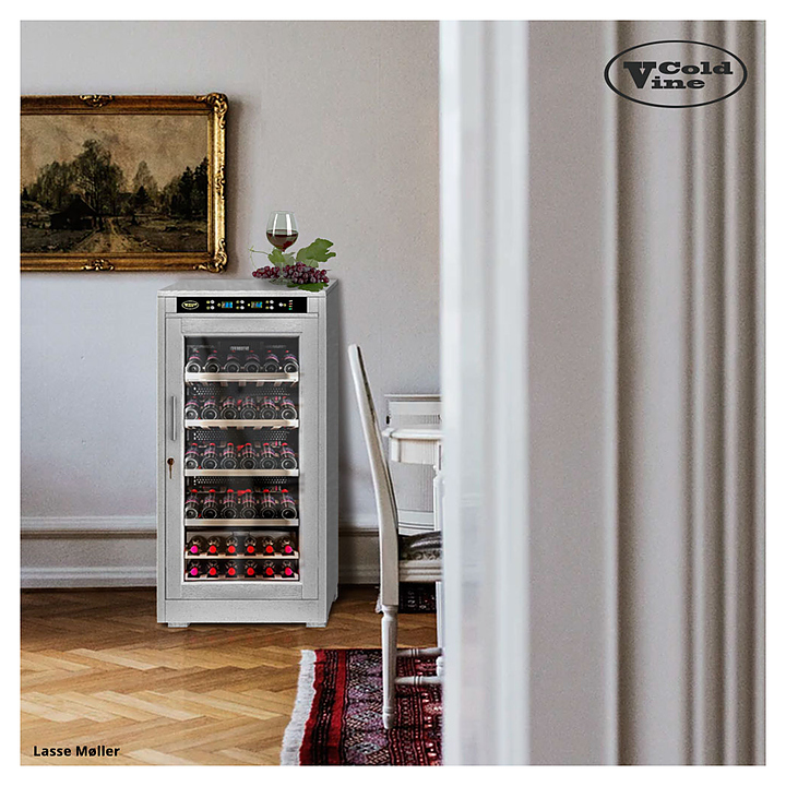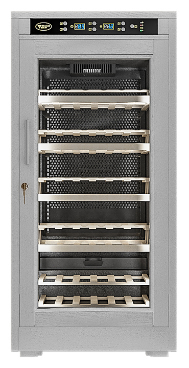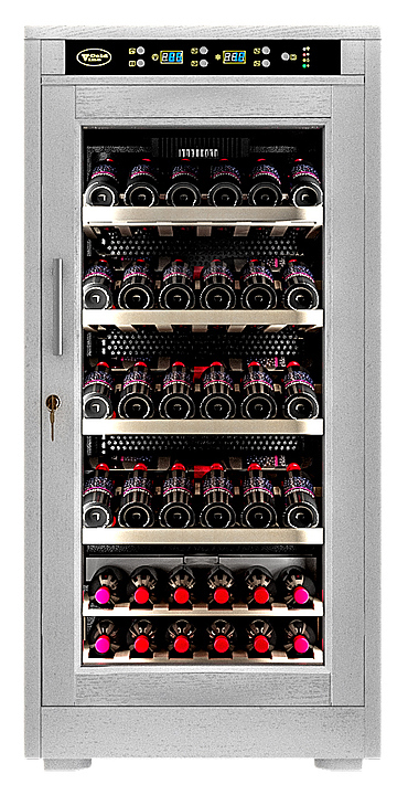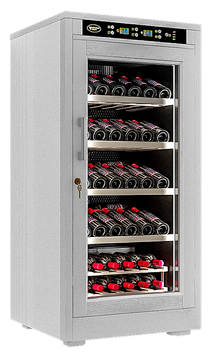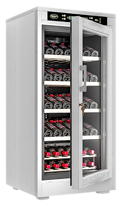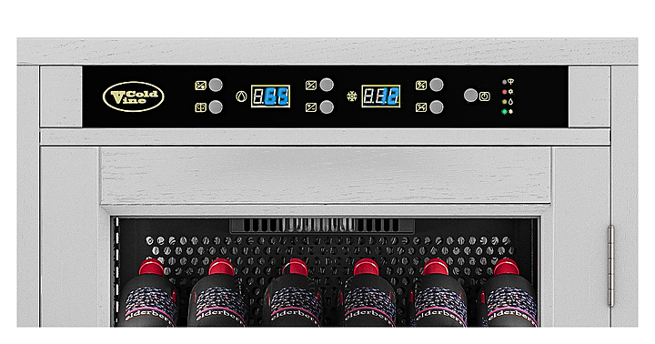 Винный шкаф Cold Vine C66-WW1 создает оптимальные условия для сохранения всех вкусовых свойств разливного вина. Модель оснащена цифровым контролем влажности, 5 деревянными полками и белой светодиодной подсветкой. Корпус классический черный и обит деревом белого цвета (шпон дуба).