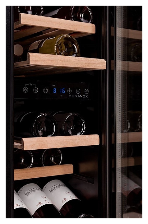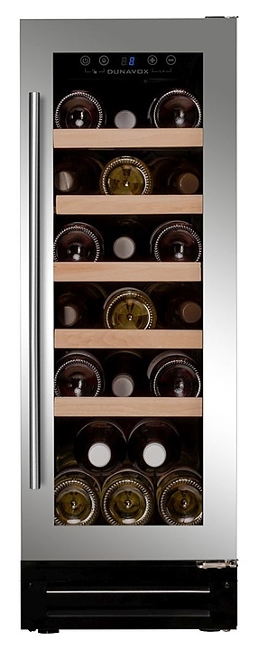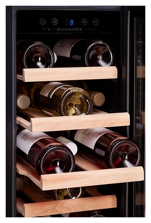 Винный шкаф Dunavox DAUF-19.58SS предназначен для демонстрации, хранения и создания оптимальных условий для сохранения всех вкусовых свойств вина в бутылках на предприятиях общественного питания, торговли, в барах, ресторанах, специализированных магазинах, частных домах или квартирах. Модель оснащена сенсорной панелью управления и электронным термостатом. Корпус и ручка выполнены из стали, дверь - из бесшовной нержавеющей стали и двойного тонированного стекла с защитой от ультрафиолетовых лучей, выдвижные полки - из массива бука.