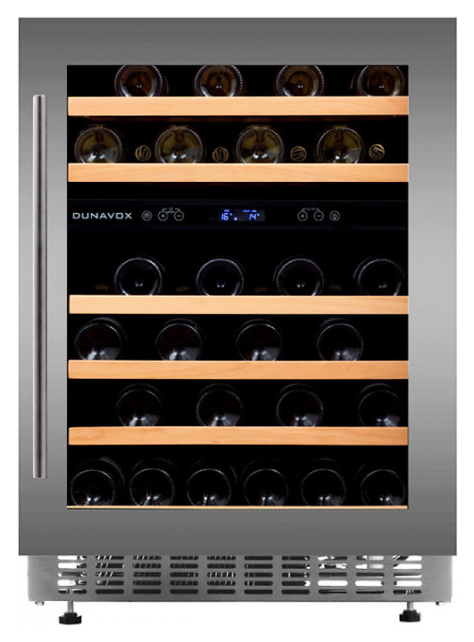 Винный шкаф Dunavox DAUF-46.145DSS предназначен для демонстрации, хранения и создания оптимальных условий для сохранения всех вкусовых свойств вина в бутылках на предприятиях общественного питания, торговли, в барах, ресторанах, специализированных магазинах, частных домах или квартирах. Модель оснащена сенсорной панелью управления, встроенной системой вентиляции и углубленным цоколем. Корпус выполнен из стали, дверь - из рамы из бесшовной нержавеющей стали и тройного стекла с защитой от ультрафиолетовых лучей, выдвижные полки - из массива бука, ручка двери - из стали.