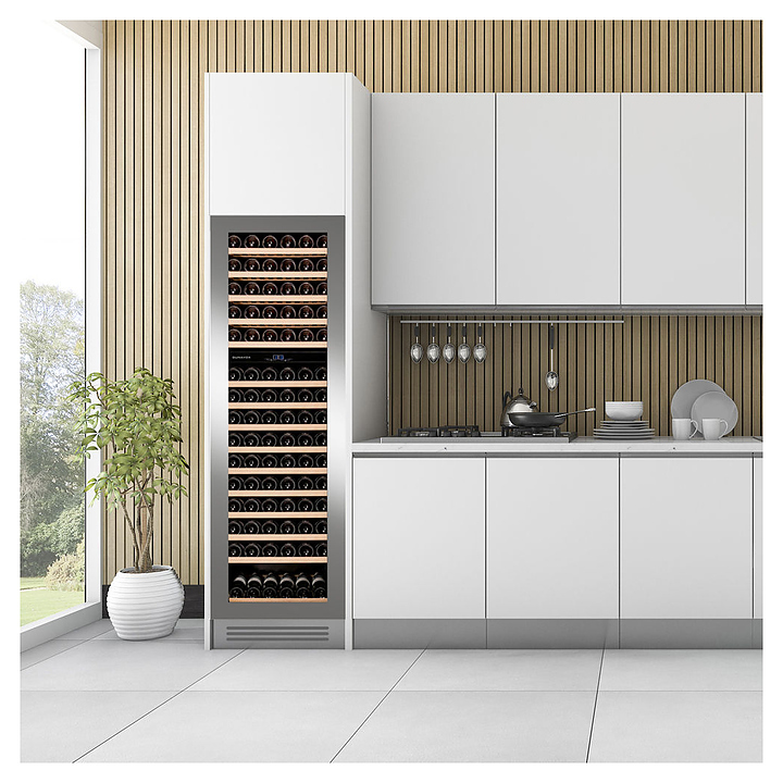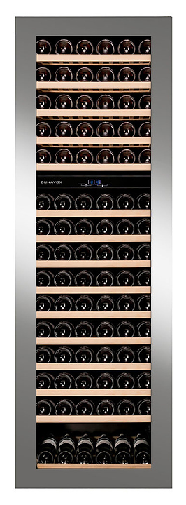 Винный шкаф Dunavox DAVG-114.288DSS.TO предназначен для демонстрации, хранения и создания оптимальных условий для сохранения всех вкусовых свойств вина в бутылках на предприятиях общественного питания, торговли, в барах, ресторанах, специализированных магазинах, частных домах или квартирах. Модель оснащена сенсорной панелью управления и электронным термостатом. Корпус выполнен из стали, дверь - из рамы серебристого цвета и тройного затемненного стекла с защитой от ультрафиолетовых лучей, выдвижные полки - из массива бука.