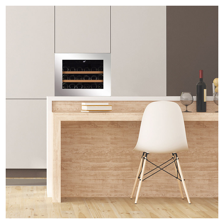Винный шкаф Dunavox DAVG-18.46SS.TO предназначен для демонстрации, хранения и создания оптимальных условий для сохранения всех вкусовых свойств вина в бутылках на предприятиях общественного питания, торговли, в барах, ресторанах, специализированных магазинах, частных домах или квартирах. Модель оснащена сенсорной панелью управления, 2 выдвижными полками и электронным термостатом. Корпус выполнен из черной стали, дверная рама - из бесшовной нержавеющей стали, дверь - из тройного затемненного стекла с защитой от ультрафиолетовых лучей, полки - из массива бука.