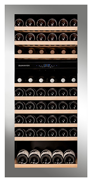 Винный шкаф Dunavox DAVG-72.185DSS.TO предназначен для демонстрации, хранения и создания оптимальных условий для сохранения всех вкусовых свойств вина в бутылках на предприятиях общественного питания, торговли, в барах, ресторанах, специализированных магазинах, частных домах или квартирах. Модель оснащена сенсорной панелью управления, 9 выдвижными полками и электронным термостатом. Корпус выполнен из черной стали, дверная рама - из бесшовной нержавеющей стали, дверь - из двойного затемненного стекла с защитой от ультрафиолетовых лучей, полки - из массива бука, ручка - из стали.