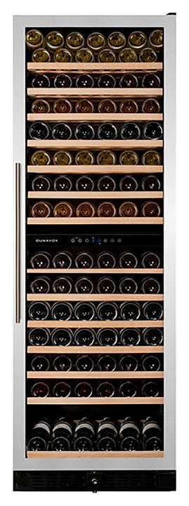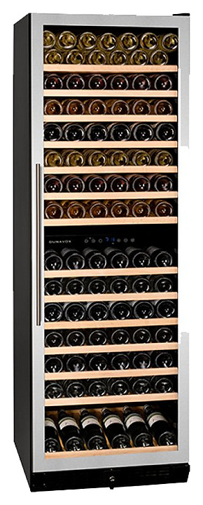 Винный шкаф Dunavox DX-166.428SDSK серии Exclusive предназначен для демонстрации, хранения и создания оптимальных условий для сохранения всех вкусовых свойств вина в бутылках на предприятиях общественного питания, торговли, в барах, ресторанах, специализированных магазинах, частных домах или квартирах. Модель оснащена сенсорной панелью управления и LED-подсветкой синего цвета в каждой зоне. Корпус выполнен из окрашенного металла, дверь - из бесшовной стальной рамы и тонированного стекла с защитой от ультрафиолетовых лучей, выдвижные полки - из нелакированного бука, накладная ручка двери - из нержавеющей стали.