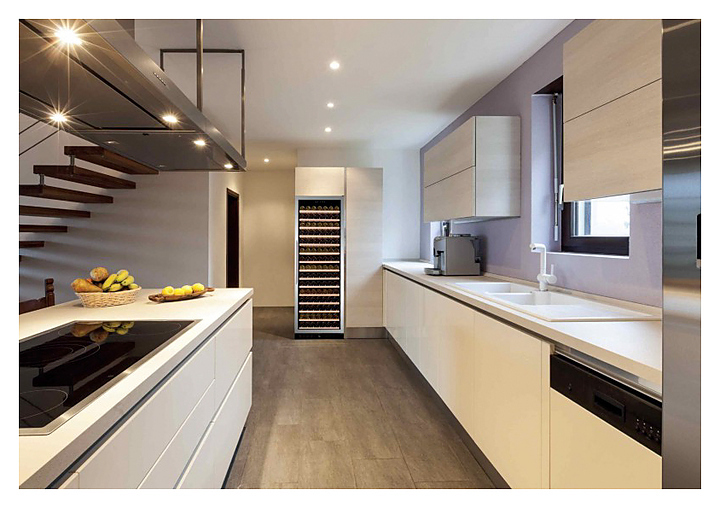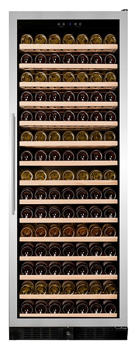 Винный шкаф Dunavox DX-194.490SSK серии Exclusive предназначен для демонстрации, хранения и создания оптимальных условий для сохранения всех вкусовых свойств вина в бутылках на предприятиях общественного питания, торговли, в барах, ресторанах, специализированных магазинах, частных домах или квартирах. Модель оснащена сенсорной панелью управления и LED-подсветкой синего цвета. Корпус выполнен из окрашенного металла, дверь - из бесшовной стальной рамы и тонированного стекла с защитой от ультрафиолетовых лучей, выдвижные полки - из нелакированного бука, накладная ручка двери - из нержавеющей стали.