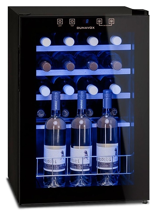 Винный шкаф Dunavox DXFH-20.62 предназначен для демонстрации, хранения и создания оптимальных условий для сохранения всех вкусовых свойств вина в бутылках на предприятиях общественного питания, торговли, в барах, ресторанах, специализированных магазинах, частных домах или квартирах. Модель оснащена сенсорной панелью управления и электронным термостатом. Корпус выполнен из стали, дверь - из рамы черного цвета и двойного тонированного стекла с защитой от ультрафиолетовых лучей, выдвижные полки - из массива бука.