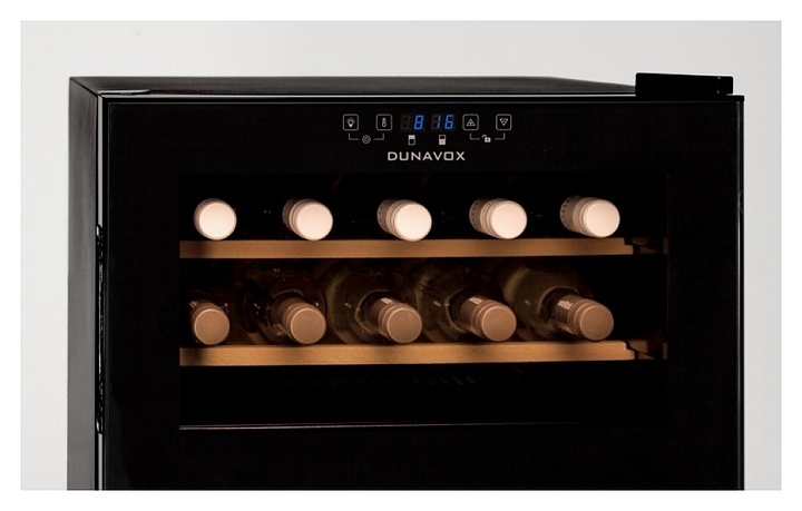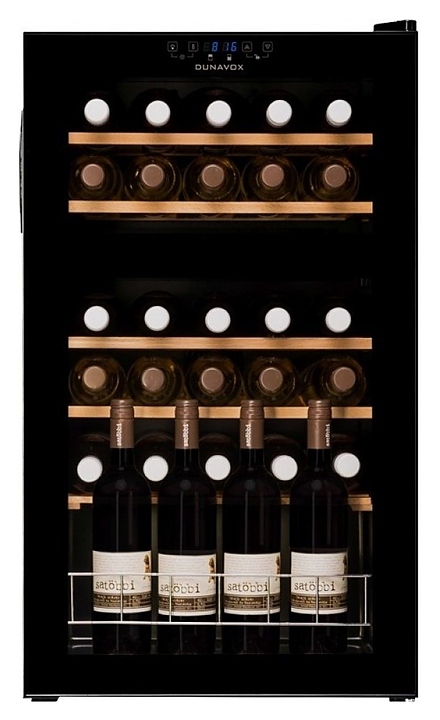 Винный шкаф Dunavox DXFH-30.80 предназначен для демонстрации, хранения и создания оптимальных условий для сохранения всех вкусовых свойств вина в бутылках на предприятиях общественного питания, торговли, в барах, ресторанах, специализированных магазинах, частных домах или квартирах. Модель оснащена сенсорной панелью управления и электронным термостатом. Корпус выполнен из стали, дверь - из рамы черного цвета и двойного тонированного стекла с защитой от ультрафиолетовых лучей, выдвижные полки - из массива бука.