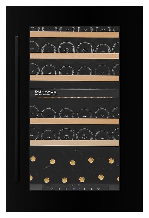 Винный шкаф Dunavox DXJ-42.100DB серии JOY-42 предназначен для охлаждения, хранения при оптимальных условиях и демонстрации бутилированного вина различных сортов в барах, ресторанах, специализированных магазинах, подсобных складских помещениях, гостиницах, а также домашних условиях. Модель оснащена холодильной камерой с 2 температурными зонами, перенавешиваемой распашной дверью с магнитным уплотнением, обзорным остеклением, вертикальной рукояткой, расположенной внутри камеры сенсорной панелью управления и жидкокристаллическим дисплеем. Корпус выполнен из стали, фронт дверной рамы черного цвета, полки – из массива буковой древесины.