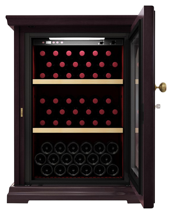 Винный шкаф IP Industrie CEX 151 VU серии Wood создает оптимальные условия для сохранения всех вкусовых свойств разливного вина. Модель оснащена электронным термостатом, цифровым дисплеем, подсветкой и замком. Корпус выполнен из крашенного металла, встроенного в деревянный короб, дверь - из двойного стекла с защитой от ультрафиолетовых лучей, полки - из крашенного металла.