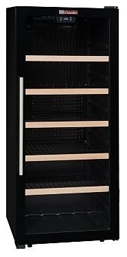 Винный шкаф La Sommeliere CVD117 предназначен для хранения вина при определенном уровне влажности и температуры в ресторанах, специализированных магазинах, отелях, подсобных складских помещениях, в частных домах или квартирах. Модель оснащена электронным термостатом с цифровым дисплеем. Полки выполнены из металла с деревянной лицевой планкой, двери - из стекла с двойным серым закаленным стеклопакетом с АУФ-защитой.