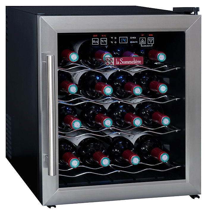 Винный шкаф La Sommeliere LS16 серии Service создает оптимальные условия для сохранения всех вкусовых свойств разливного вина в ресторанах, специализированных магазинах, подсобных складских помещениях, в частных домах или квартирах. Модель оснащена электронным термостатом с сенсорным цифровым дисплеем. Корпус и полки выполнены из металла, дверь - из стекла с УФ защитой.