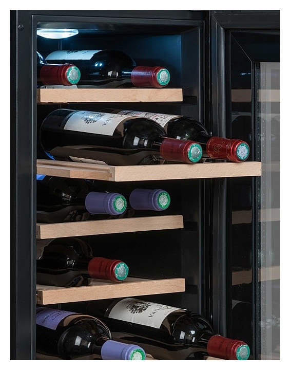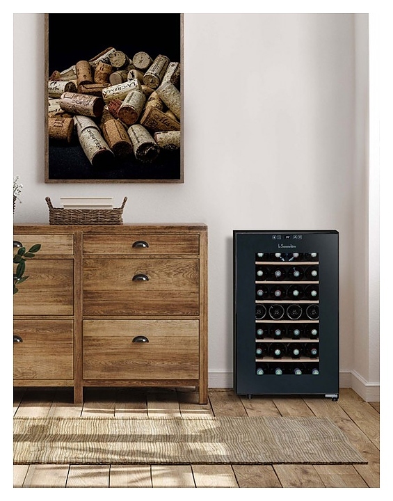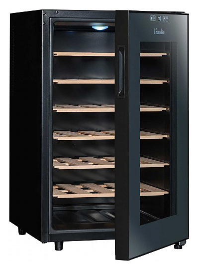 Винный шкаф La Sommeliere LS28CB серии Service предназначен для кратковременного хранения вина при определенном уровне влажности и температуры в ресторанах, специализированных магазинах, отелях, подсобных складских помещениях, в частных домах или квартирах и подготовки вина к подаче на стол. Модель оснащена сенсорным цифровым дисплеем на двери и отключаемой внутренней подсветкой. Дверь выполнена из трехслойного закаленного стекла с защитой от УФ-лучей, полки - из дерева.