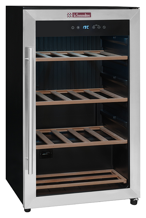 Винный шкаф La Sommeliere LS36A серии Service создает оптимальные условия для сохранения всех вкусовых свойств разливного вина в ресторанах, специализированных магазинах, подсобных складских помещениях, в частных домах или квартирах. Оборудование оснащено дверью с рамкой из нержавеющей стали, стеклом с защитой от ультрафиолетовых лучей и 4 полками из бука.