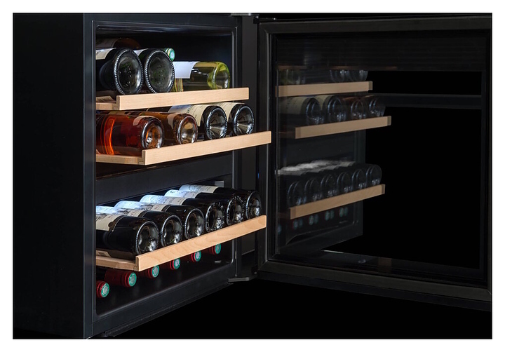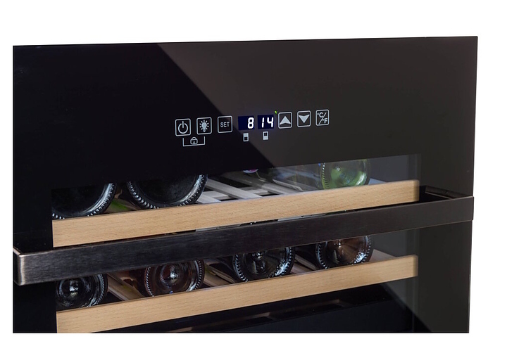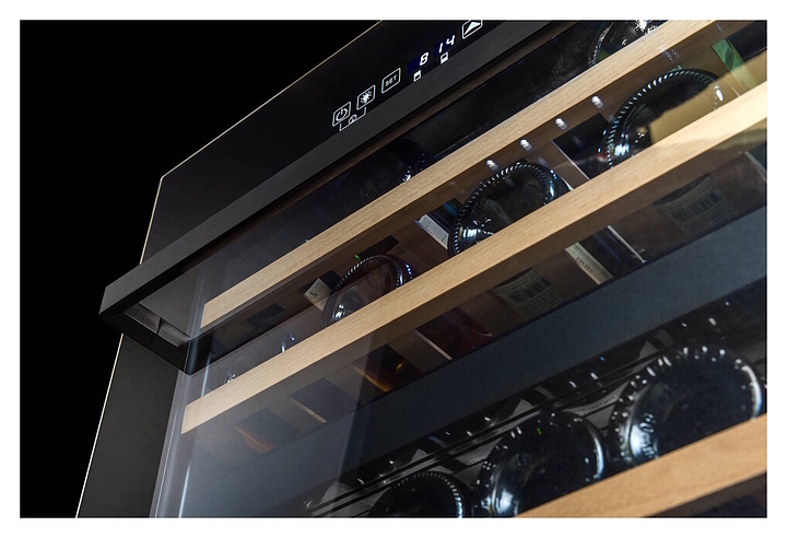 Винный шкаф La Sommeliere LSBI36BDZ предназначен для хранения бутилированного вина в ресторанах, специализированных магазинах, подсобных складских помещениях, в частных домах или квартирах. Модель оснащена сенсорным белым цифровым дисплеем с электронным термометром, белой светодиодной подсветкой, 3 полувидвижными полками, 1 полуполкой и 4 регулируемыми ножками. Дверь выполнена из двойного закаленного стеклопакета с защитой от УФ-излучений, полки - из бука.