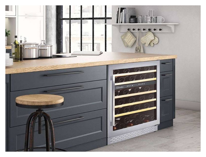 Винный шкаф La Sommeliere LSBU51X1 создает оптимальные условия для сохранения всех вкусовых свойств разливного вина в ресторанах, специализированных магазинах, подсобных складских помещениях, в частных домах или квартирах. Модель оснащена сенсорным цифровым дисплеем, синей подсветкой, угольным фильтром, 4 регулируемыми ножками, съемной решеткой вентиляции и 6 фиксированными полками. Полки выполнены из бука, дверь - из двойного стеклопакета с защитой от УФ-излучений.