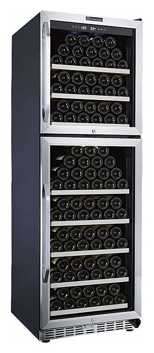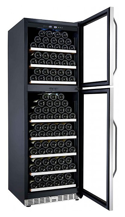 Винный шкаф La Sommeliere MZ165DP серии Prestige предназначен для кратковременного хранения вина при определенном уровне влажности и температуры в ресторанах, специализированных магазинах, отелях, подсобных складских помещениях, в частных домах или квартирах и подготовки вина к подаче на стол. Модель оснащена сенсорным цифровым дисплеем, отключаемой внутренней подсветкой, 2 дверями и 4 регулируемыми ножками. Двери выполнены из двухслойного закаленного стекла с защитой от УФ-лучей, рамки дверей - из нержавеющей стали, полки - из дерева с фасадом из нержавеющей стали.