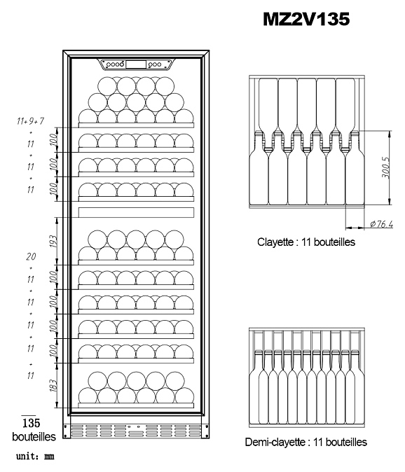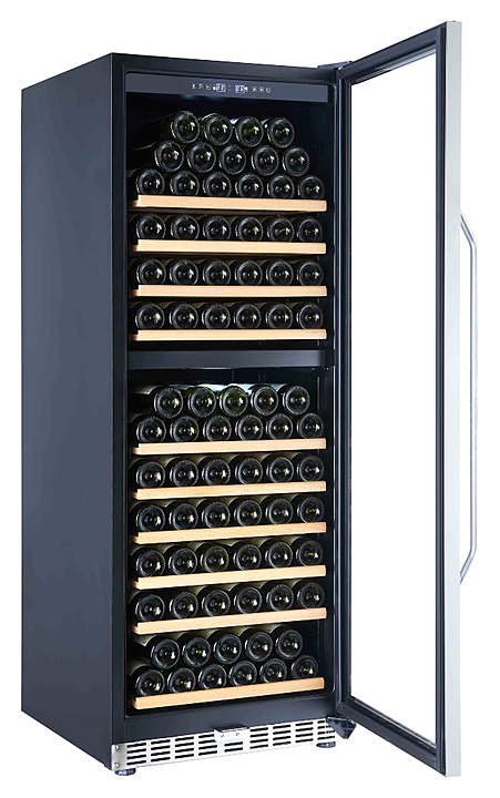 Винный шкаф La Sommeliere MZ2V135 серии Prestige создает оптимальные условия для сохранения всех вкусовых свойств разливного вина в ресторанах, специализированных магазинах, подсобных складских помещениях, в частных домах или квартирах. Оборудование оснащено дверью с рамкой из нержавеющей стали, стеклом с защитой от ультрафиолетовых лучей, 9 выдвижными и 1 фиксированной полками из бука.