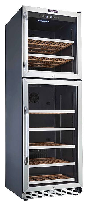 Винный шкаф La Sommeliere MZ2V165 серии Prestige создает оптимальные условия для сохранения всех вкусовых свойств разливного вина в ресторанах, специализированных магазинах, подсобных складских помещениях, в частных домах или квартирах. Оборудование оснащено 2 дверями с рамками из нержавеющей стали, стеклами с защитой от ультрафиолетовых лучей, 7 выдвижными и 1 фиксированной полками из бука.