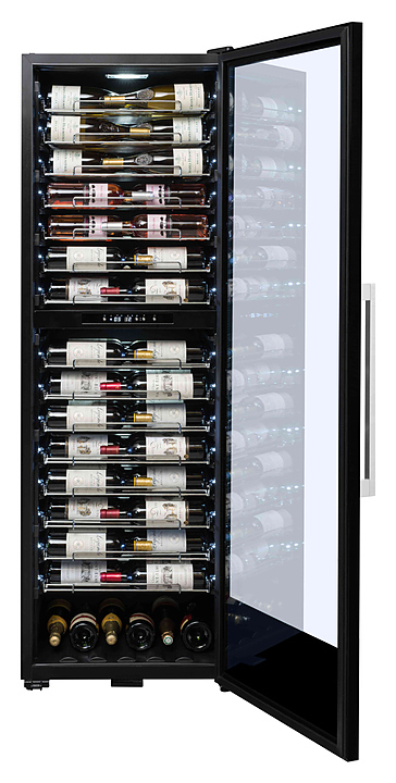 Винный шкаф La Sommeliere MZ180TZ создает оптимальные условия для сохранения всех вкусовых свойств разливного вина в ресторанах, специализированных магазинах, подсобных складских помещениях, в частных домах или квартирах. Модель оснащена электронным термостатом с сенсорным цифровым дисплеем. Полки выполнены из металла, дверь - из стекла с УФ защитой.