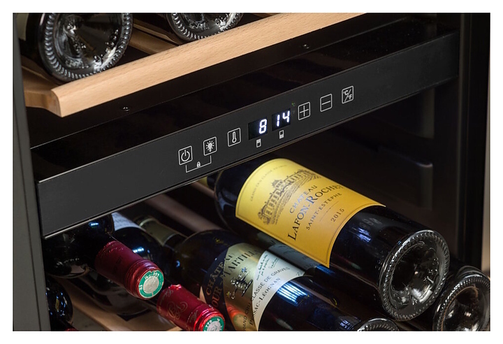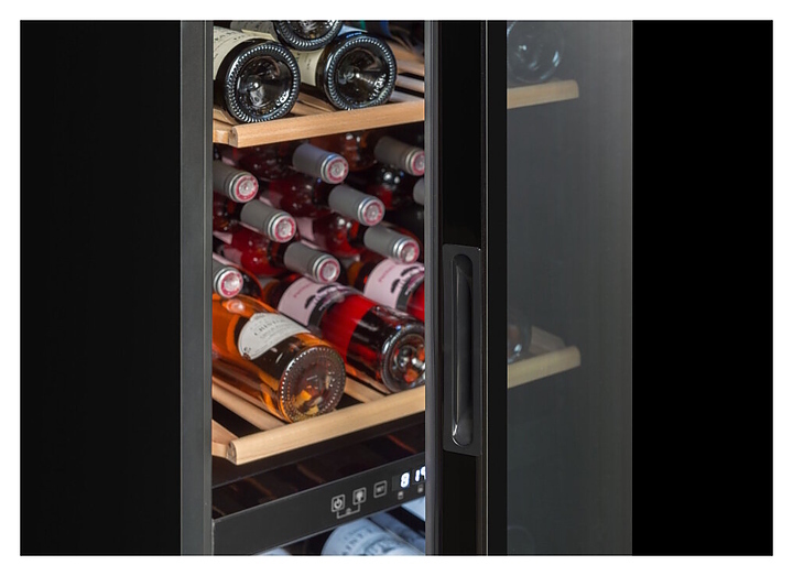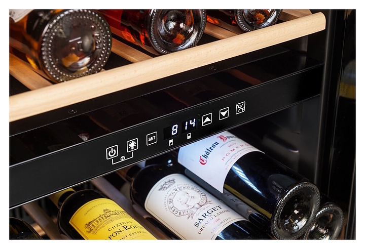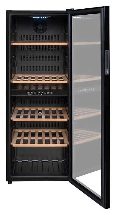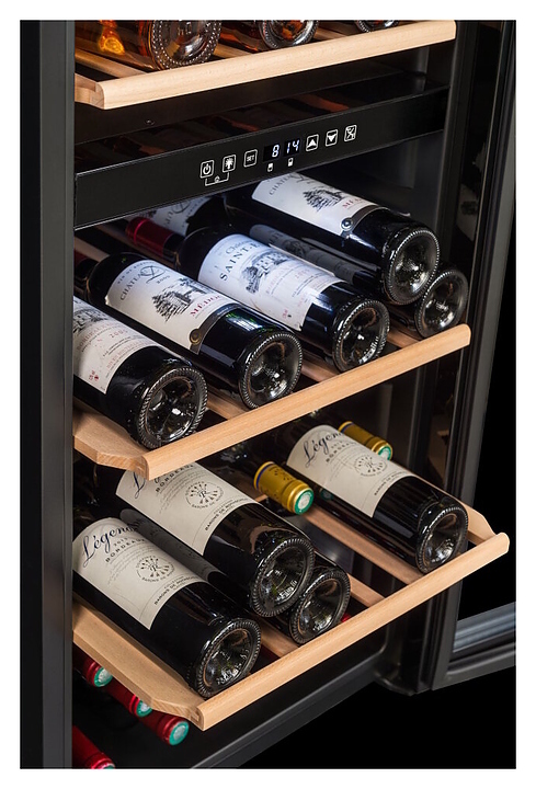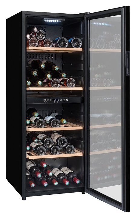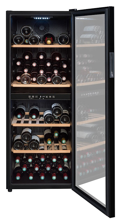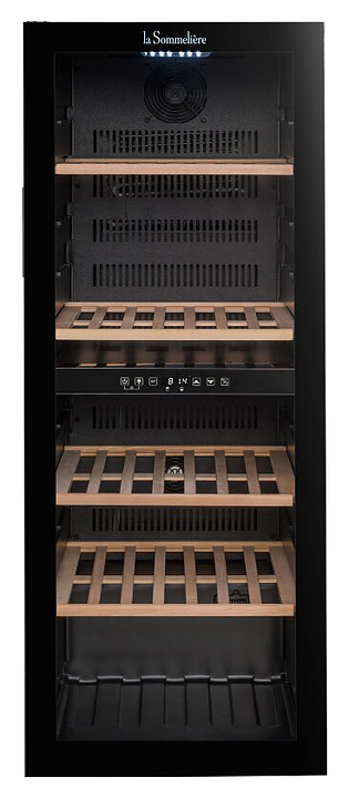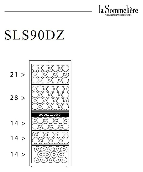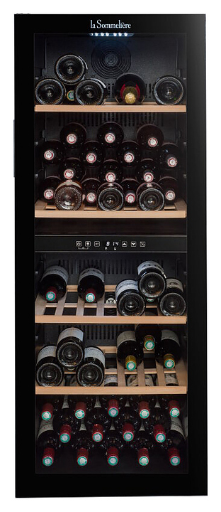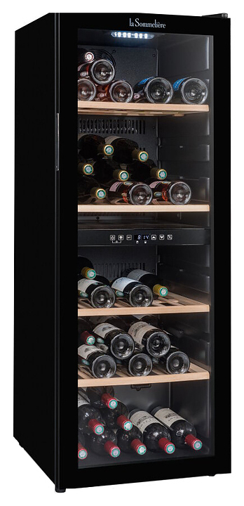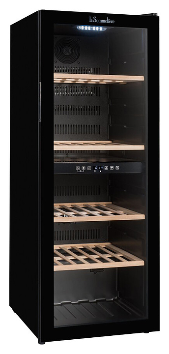 Винный шкаф La Sommeliere SLS90DZ предназначен для хранения бутилированного вина в ресторанах, специализированных магазинах, подсобных складских помещениях, в частных домах или квартирах. Модель оснащена 2 независимыми температурными отсеками, сенсорным белым цифровым дисплеем с электронным термометром, белой светодиодной подсветкой с выключателем, 4 полувидвижными полками, 2 регулируемыми ножками и 2 колесами. Дверь выполнена из двойного коричневого тройного закаленного стеклопакета с защитой от УФ-излучений, полки - из натурального дерева.