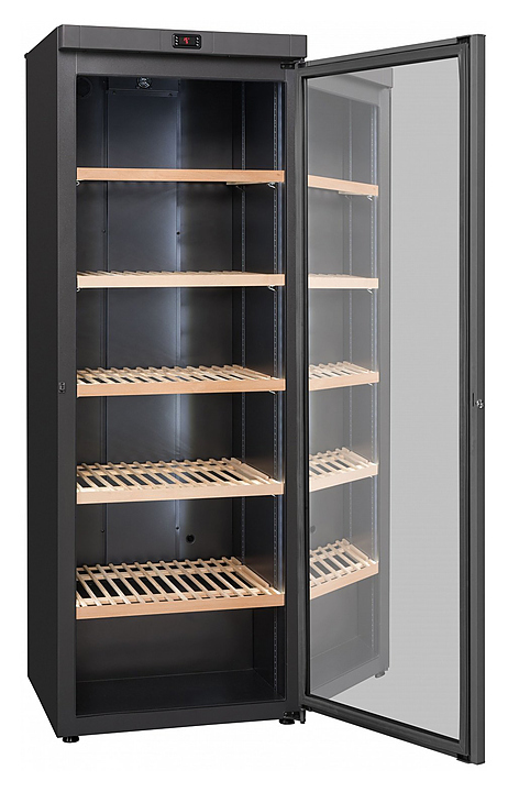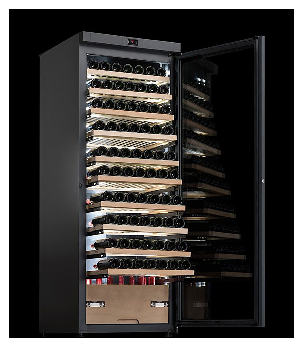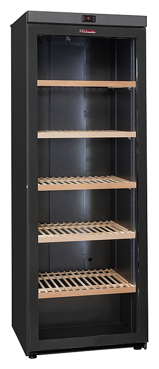 Винный шкаф La Sommeliere VIP330V серии Prestige создает оптимальные условия для сохранения всех вкусовых свойств разливного вина в ресторанах, специализированных магазинах, подсобных складских помещениях, в частных домах или квартирах. Модель оснащена электронным термостатом с сенсорным цифровым дисплеем. Копрус выполнен из металла, полки - из массива дерева, двери - из двухслойного закаленного стекла с УФ защитой.