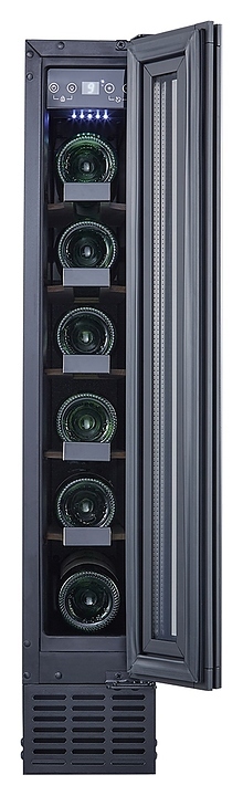 Встраиваемый винный шкаф Libhof Connoisseur CFD-46 Black предназначен для хранения при оптимальных условиях бутилированного вина различных сортов в барах, ресторанах, специализированных магазинах, подсобных складских помещениях, а также домашних условиях. Модель оснащена 5 полками, съемной цокольной вентиляционной решеткой, распашной дверью на внешних петлях, интегрированной рукояткой, прозрачным дымчатым обзорным остеклением, внешней сенсорной панелью управления и цифровым дисплеем. Корпус выполнен из металла с антикоррозийным покрытием черного цвета, полки - из массива бука с хромированной окантовкой фасада.