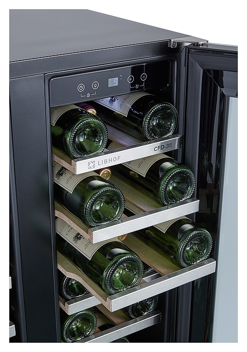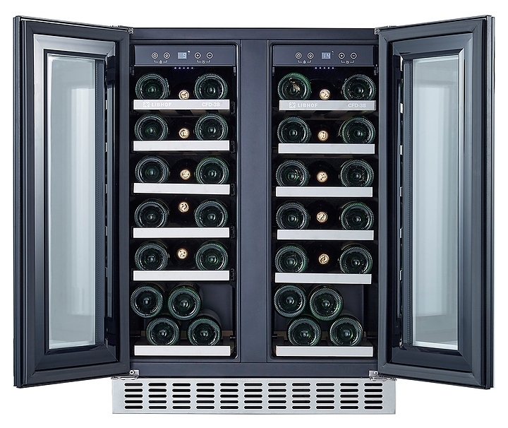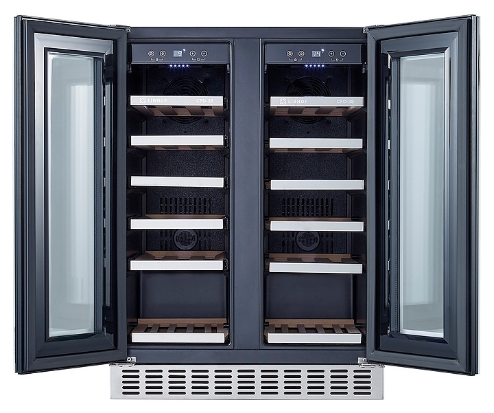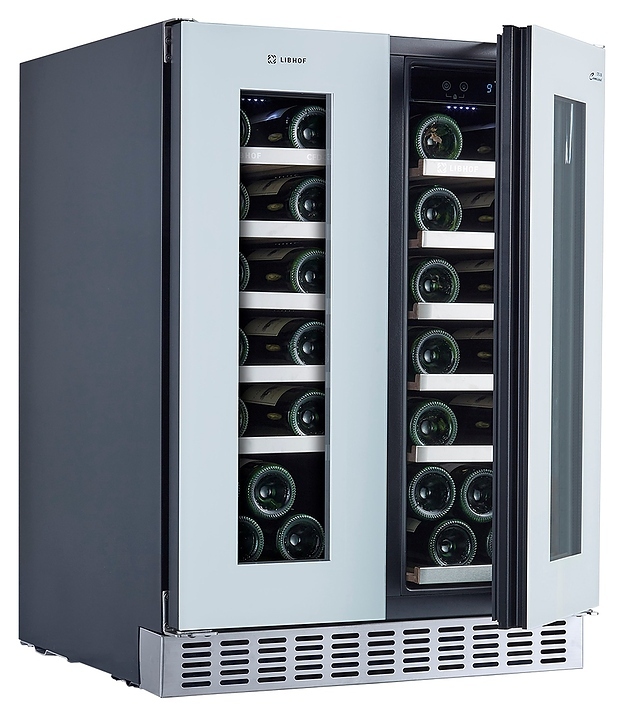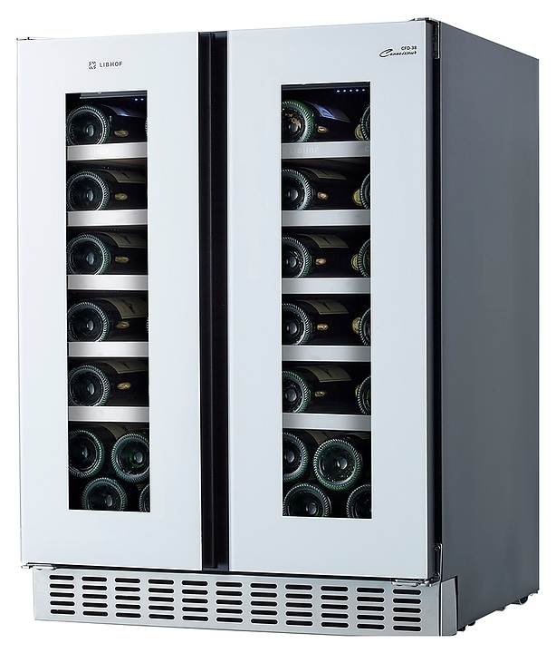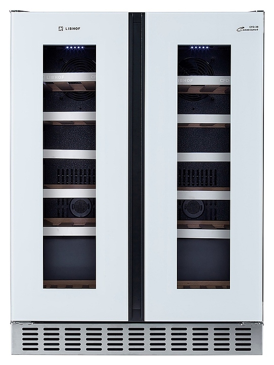 Встраиваемый винный шкаф Libhof Connoisseur CFD-38 white предназначен для хранения при оптимальных условиях бутилированного вина различных сортов в барах, ресторанах, специализированных магазинах, подсобных складских помещениях, а также домашних условиях. Модель оснащена холодильной камерой с 2 независимыми температурными зонами, 12 полками, съемной вентиляционной решеткой, 2 распашными дверьми на внешних петлях, прозрачным обзорным остеклением, сенсорной панелью управления и цифровым дисплеем для каждой зоны. Корпус выполнен из металла с антикоррозийным покрытием, полки - из массива бука с хромированной окантовкой.