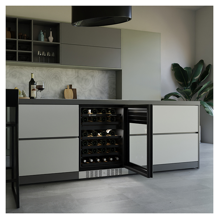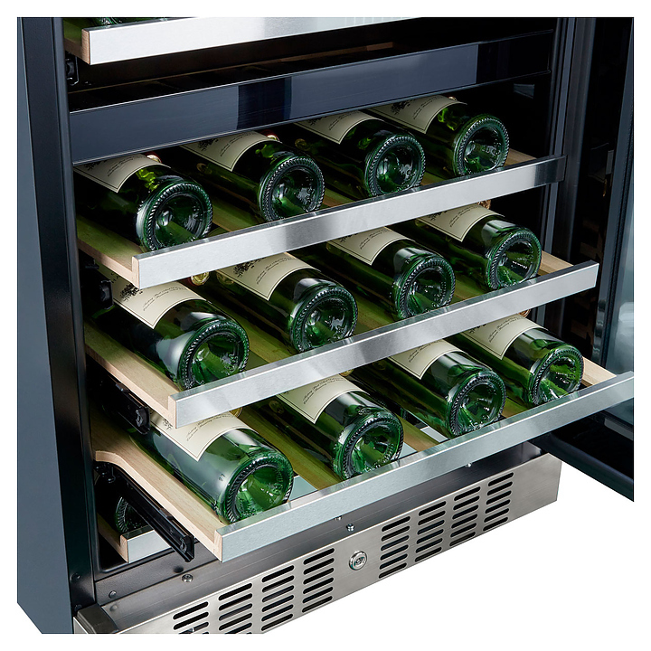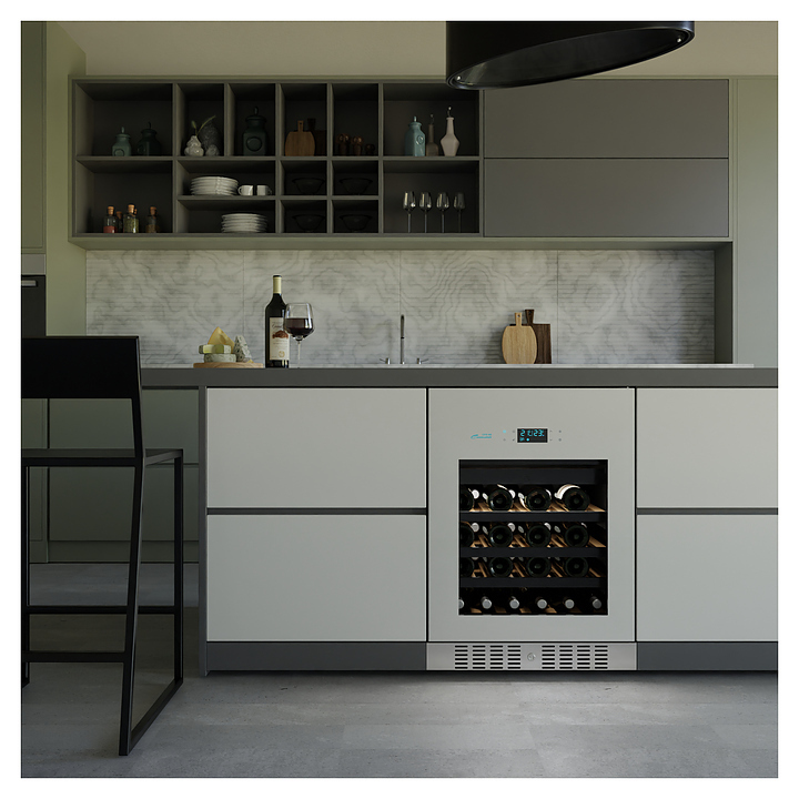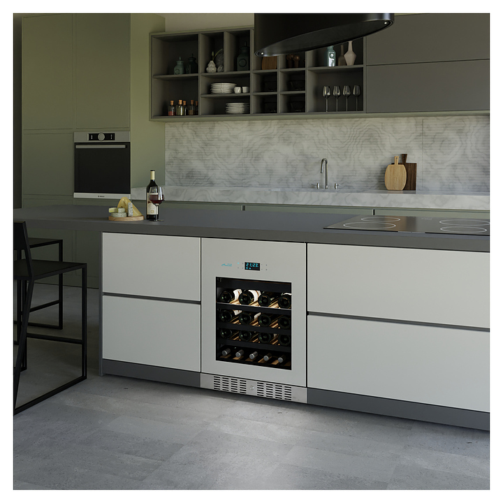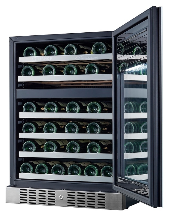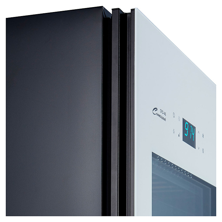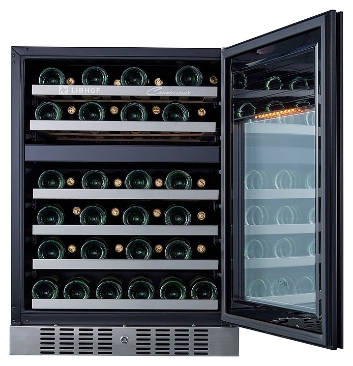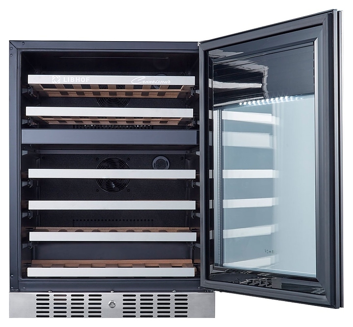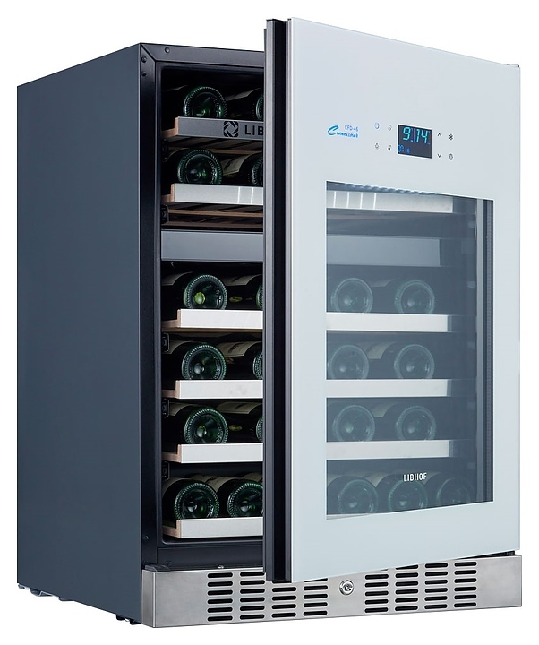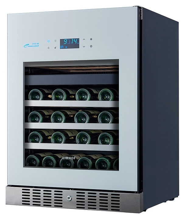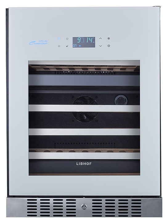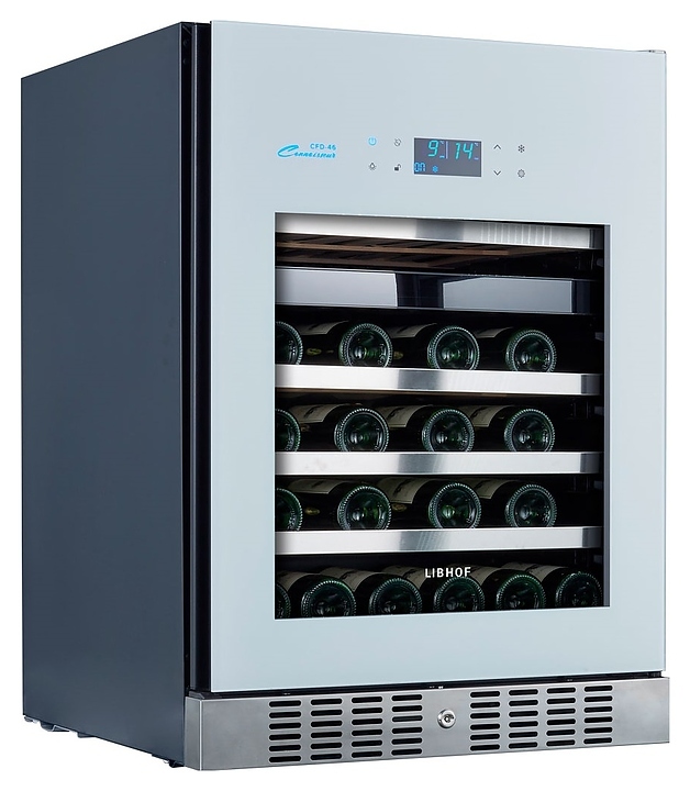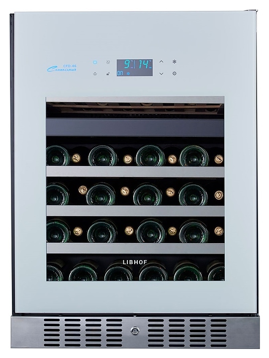 Встраиваемый винный шкаф Libhof Connoisseur CFD-46 White предназначен для хранения при оптимальных условиях бутилированного вина различных сортов в барах, ресторанах, специализированных магазинах, подсобных складских помещениях, а также домашних условиях. Модель оснащена холодильной камерой с 2 независимыми температурными зонами, съемной цокольной вентиляционной решеткой, запираемой на ключ распашной дверью на внешних петлях, интегрированной рукояткой, прозрачным обзорным остеклением, внешней сенсорной панелью управления и цифровым дисплеем. Корпус выполнен из металла с антикоррозийным покрытием черного цвета, полки – из массива буковой древесины с хромированной окантовкой фасада, фронт двери белого цвета.