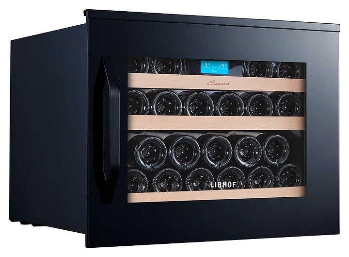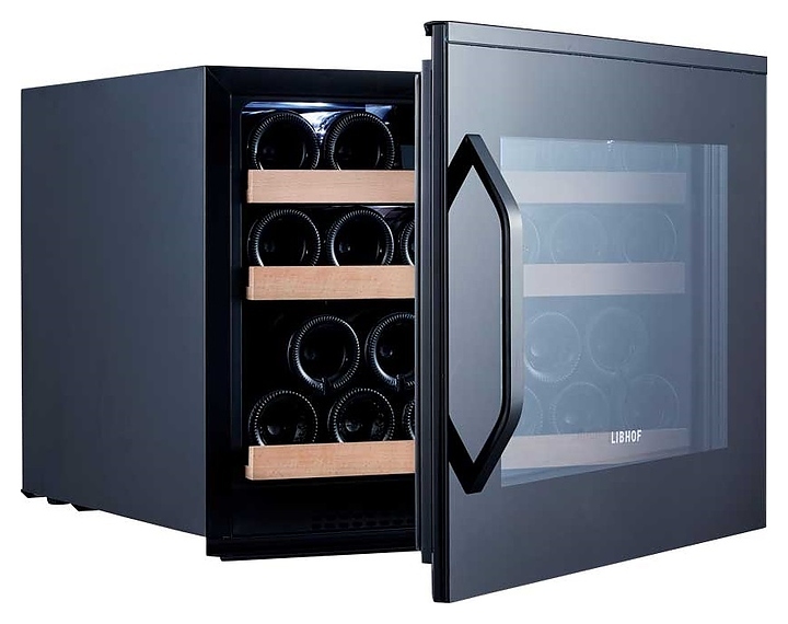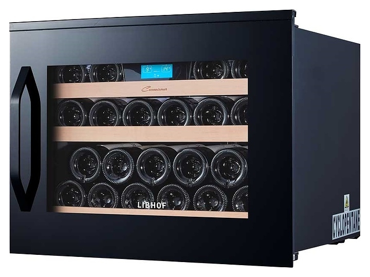 Встраиваемый винный шкаф Libhof Connoisseur CK-21 Black предназначен для хранения при оптимальных условиях бутилированного вина различных сортов в барах, ресторанах, специализированных магазинах, подсобных складских помещениях, а также в домашних условиях. Модель оснащена холодильной камерой с 3 съемными полками, распашной дверью с внутренними петлями, рукояткой и прозрачным дымчатым обзорным стеклом с защитным напылением от ультрафиолетовых лучей. Корпус выполнен из металла, полки – из массива буковой древесины.