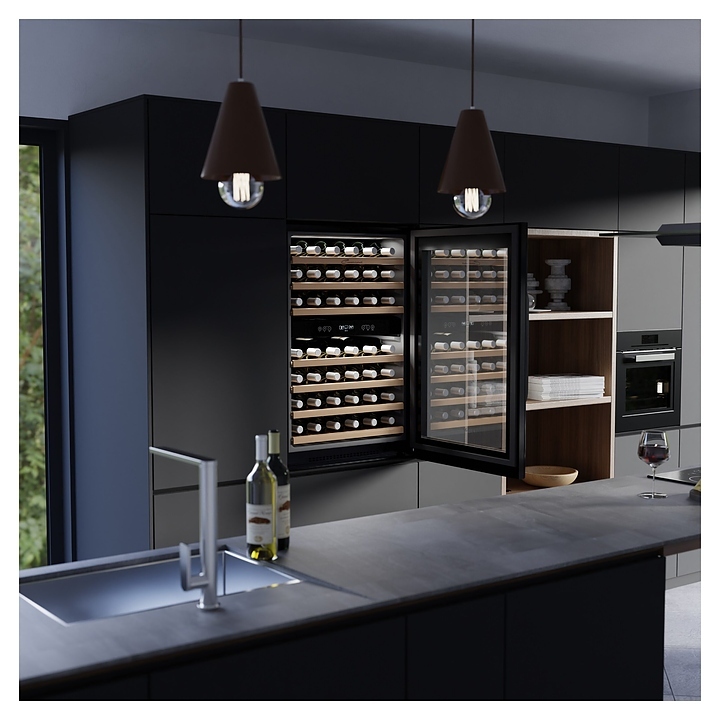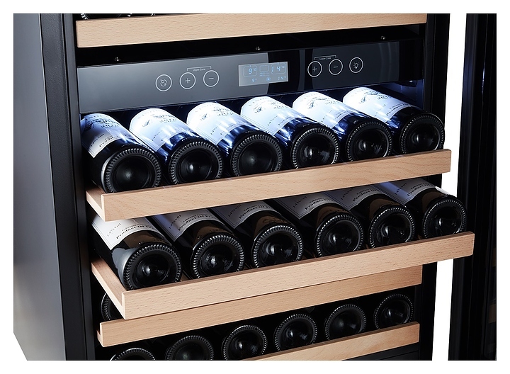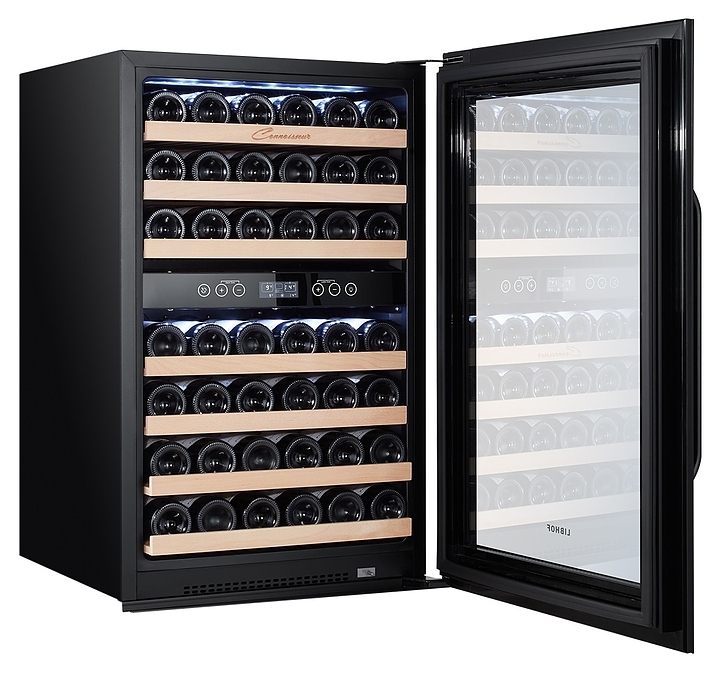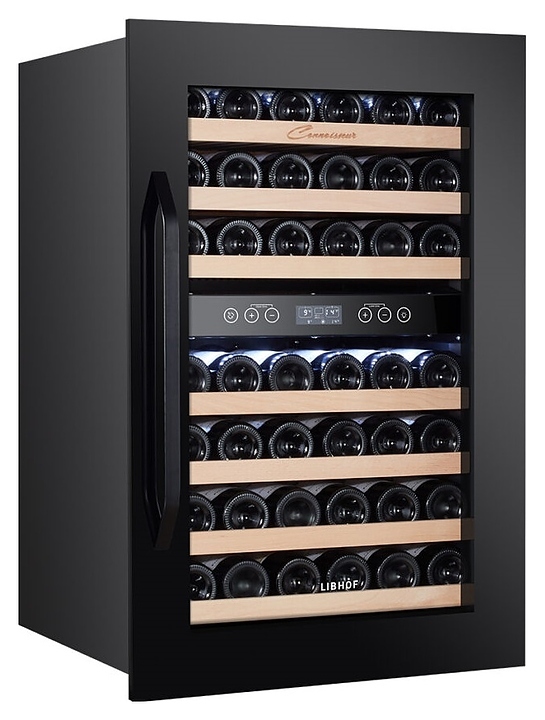 Встраиваемый винный шкаф Libhof Connoisseur CKD-42 Black предназначен для хранения при оптимальных условиях бутилированного вина различных сортов в барах, ресторанах, специализированных магазинах, подсобных складских помещениях, а также домашних условиях. Модель оснащена холодильной камерой с 2 независимыми температурными зонами, цокольной вентиляционной решеткой, распашной дверью на внутренних петлях, длинной вертикальной рукояткой, прозрачным дымчатым обзорным остеклением, внутренней сенсорной панелью управления и цифровым дисплеем. Корпус и рукоятка выполнены из металла с антикоррозийным покрытием черного цвета, полки – из массива буковой древесины.