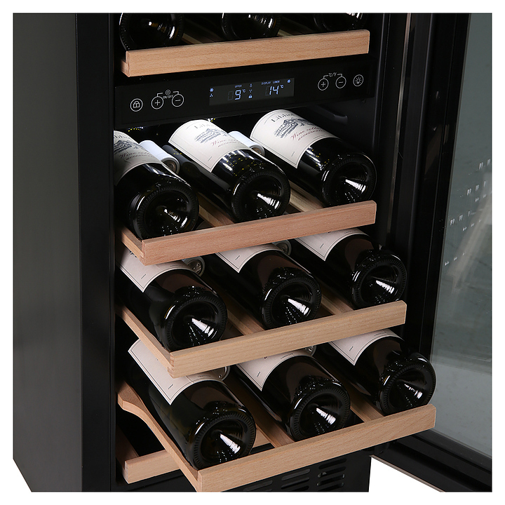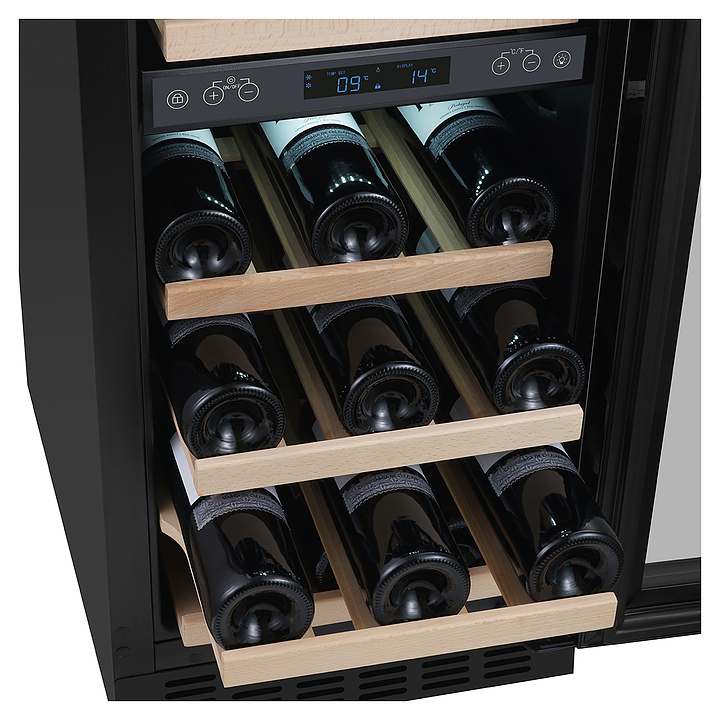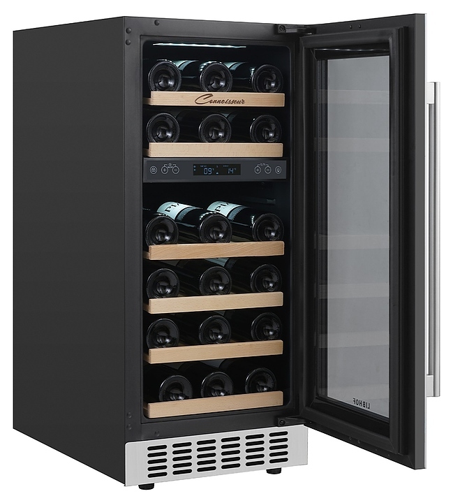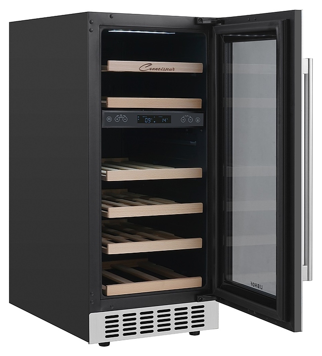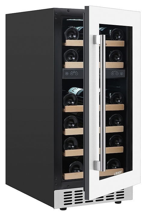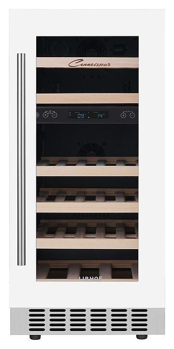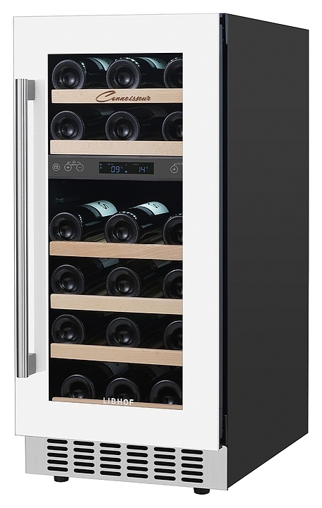 Встраиваемый винный шкаф Libhof Connoisseur CXD-28 White предназначен для хранения при оптимальных условиях бутилированного вина различных сортов в барах, ресторанах, специализированных магазинах, подсобных складских помещениях, а также в домашних условиях. Модель оснащена холодильной камерой, 6 полками с направляющими для размещения бутылок, распашной дверью с внутренними петлями, длинной вертикальной рукояткой, прозрачным дымчатым обзорным стеклом и сенсорной панелью управления с цифровым дисплеем с индикацией синего цвета. Корпус выполнен из металла с антикоррозийным покрытием фронта белого цвета, рукоятка – из металла серебристого цвета, полки – из массива буковой древесины.