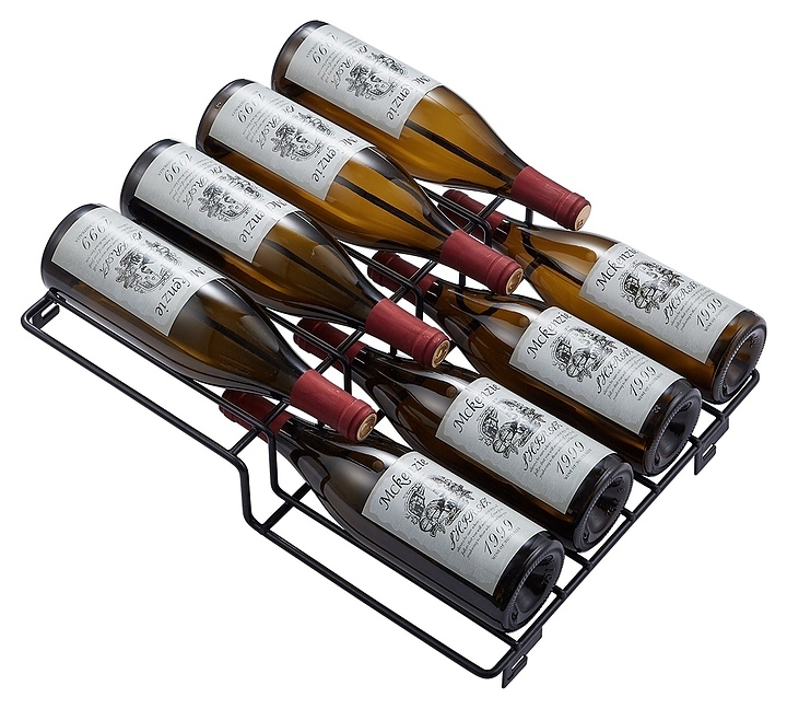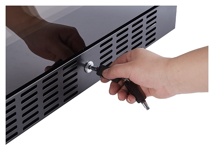 В комплект поставки входят 6 полок с направляющими для размещения бутылок, ключ от дверного замка и инструкция по эксплуатации.