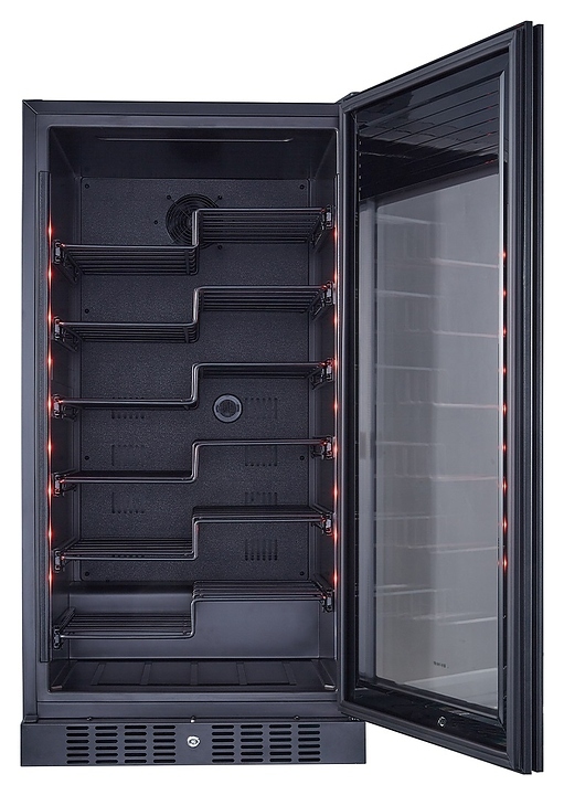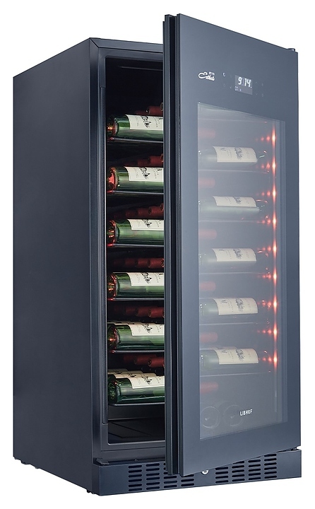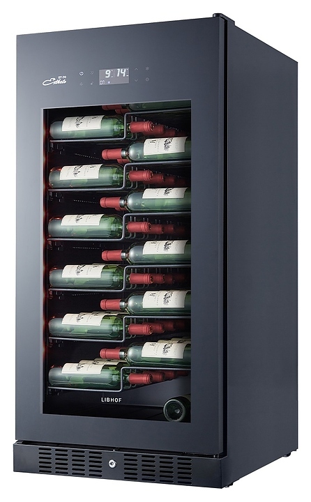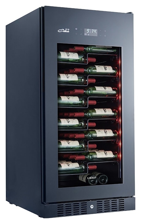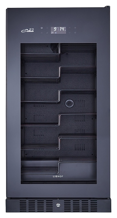 Винный шкаф Libhof Esthete ET-70 Black предназначен для хранения при оптимальных условиях бутилированного вина различных сортов в барах, ресторанах, специализированных магазинах, подсобных складских помещениях, а также домашних условиях. Модель оснащена монотемпературной холодильной камерой, съемной цокольной вентиляционной решеткой, запираемой на ключ распашной дверью на внешних петлях, скрытой интегрированной рукояткой, прозрачным дымчатым обзорным остеклением, внешней сенсорной панелью управления и цифровым дисплеем. Корпус и полки выполнены из металла с антикоррозийным покрытием черного цвета.