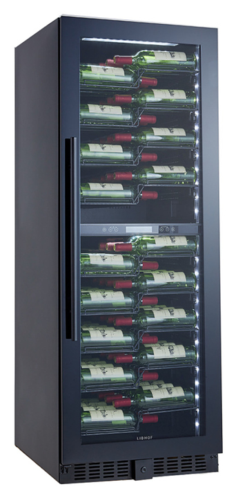 Винный шкаф Libhof Esthete EZD-104 предназначен для хранения при оптимальных условиях бутилированного вина различных сортов в барах, ресторанах, специализированных магазинах, подсобных складских помещениях, а также домашних условиях. Модель оснащена холодильной камерой с 2 независимыми температурными зонами, 9 специальными z-shape полками, съемной цокольной вентиляционной решеткой, запираемой на ключ распашной дверью на внутренних петлях с ручкой, дымчатым обзорным остеклением, сенсорной панелью управления и цифровым дисплеем. Корпус и полки выполнены из металла и устойчивы к воздействию влаги.
