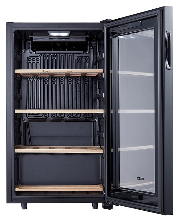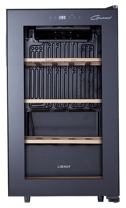 Винный шкаф Libhof Gourmet GM-34 предназначен для охлаждения вина перед подачей, длительного хранения или созревания винной коллекции в барах, ресторанах, специализированных магазинах, подсобных складских помещениях или в домашних условиях. Модель оснащена холодильной камерой с 4 полками, распашной дверью на внешних петлях с ручкой, дымчатым обзорным остеклением, сенсорной панелью управления и дисплеем. Корпус выполнен из металла, полки - из массива бука.
