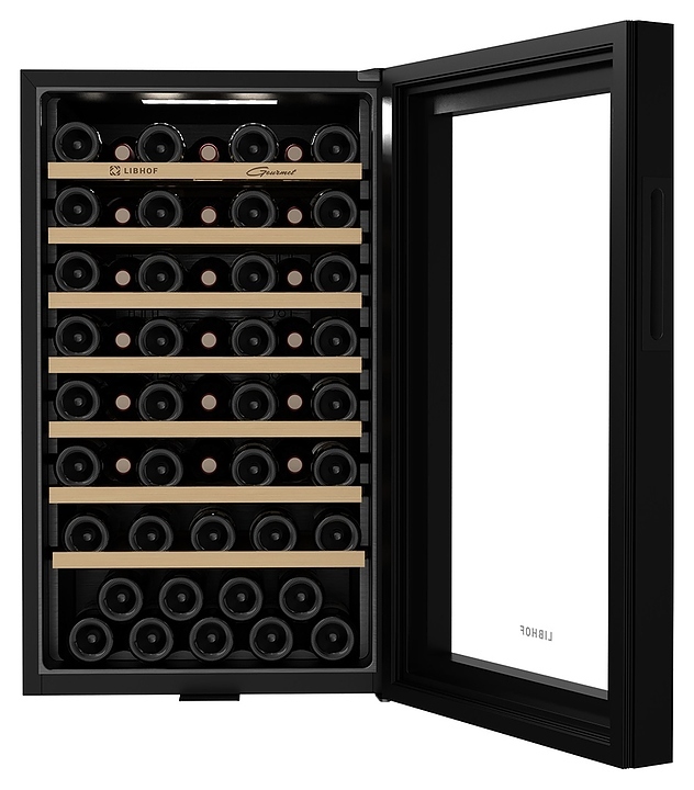 Винный шкаф Libhof Gourmet GM-56 black предназначен для хранения при оптимальных условиях и демонстрации бутилированного вина различных сортов в барах, ресторанах, специализированных магазинах, подсобных складских помещениях, а также в домашних условиях. Модель оснащена монотемпературной холодильной камерой, правосторонней распашной дверью, прозрачным обзорным остеклением и внешней сенсорной панелью управления с цифровым дисплеем индикации. Корпус выполнен из металла с антикоррозийным покрытием черного цвета и полным остеклением фронта, полки – из массива буковой древесины.