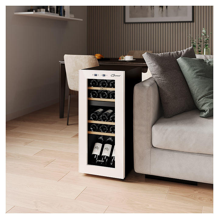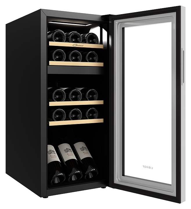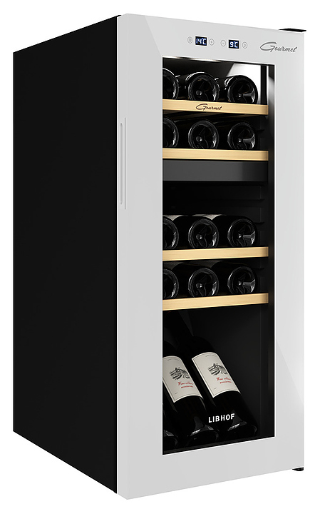 Винный шкаф Libhof Gourmet GMD-15 white предназначен для хранения при оптимальных условиях и демонстрации бутилированного вина различных сортов в барах, ресторанах, специализированных магазинах, подсобных складских помещениях, а также в домашних условиях. Модель оснащена холодильной камерой с 2 независимыми температурными зонами, правосторонней распашной дверью, прозрачным обзорным остеклением и внешней сенсорной панелью управления с 2 цифровыми дисплеями индикации. Корпус выполнен из металла с антикоррозийным покрытием черного цвета, рама двери с белым покрытием и полным остеклением фронта, полки – из массива буковой древесины.
