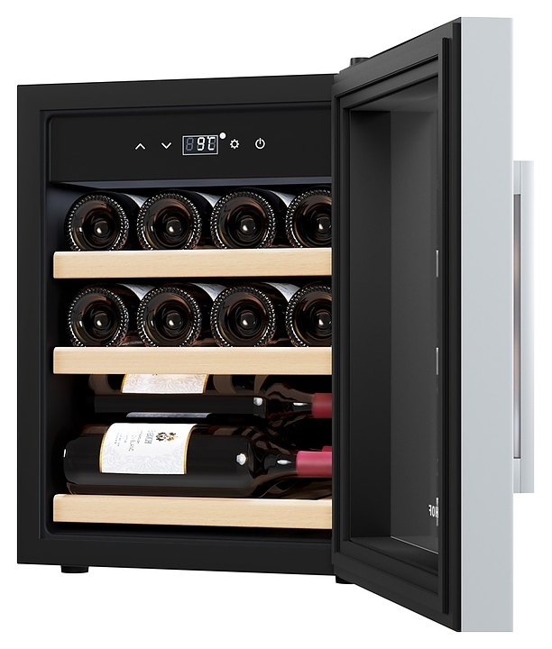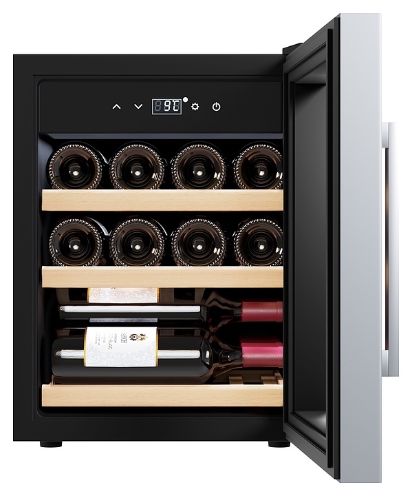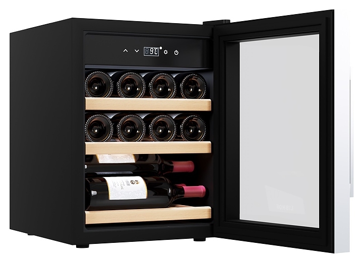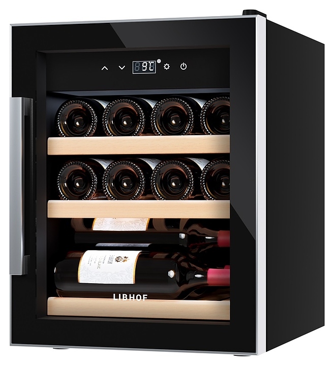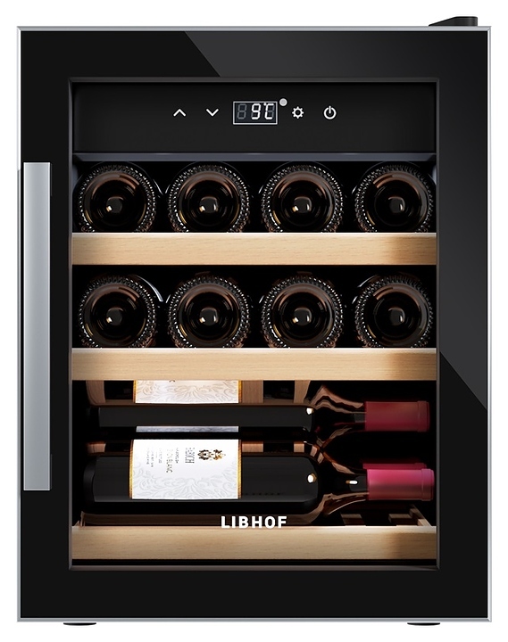 Винный шкаф Libhof Gourmet GQ-12 Black предназначен для хранения при оптимальных условиях бутилированного вина различных сортов в барах, ресторанах, специализированных магазинах, подсобных складских помещениях, а также в домашних условиях. Модель оснащена монотемпературной холодильной камерой, распашной дверью на внешних петлях, длинной вертикальной рукояткой, прозрачным обзорным стеклом, внутренней сенсорной панелью управления и цифровым дисплеем с белой подсветкой индикации. Корпус выполнен из металла с антикоррозийным покрытием черного цвета, боковой профиль рамы двери и рукоятка – из металла с серебристой поверхностью, полки – из массива буковой древесины.