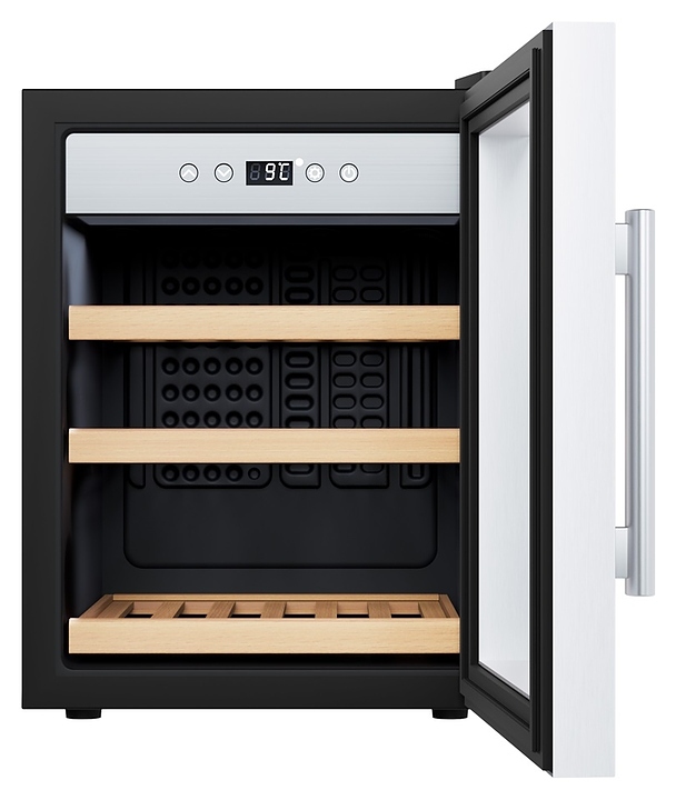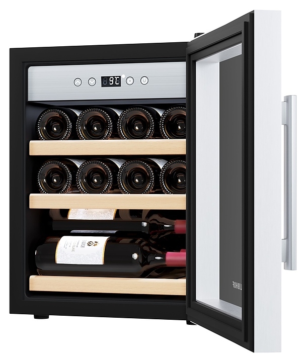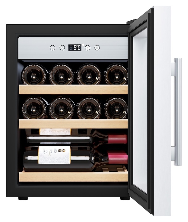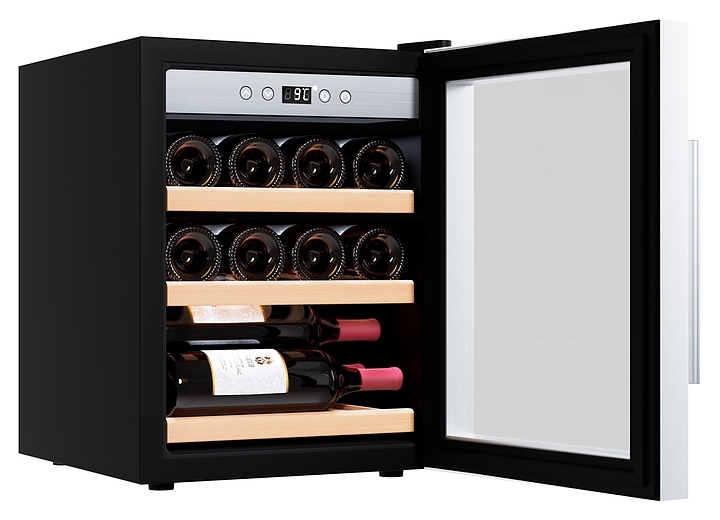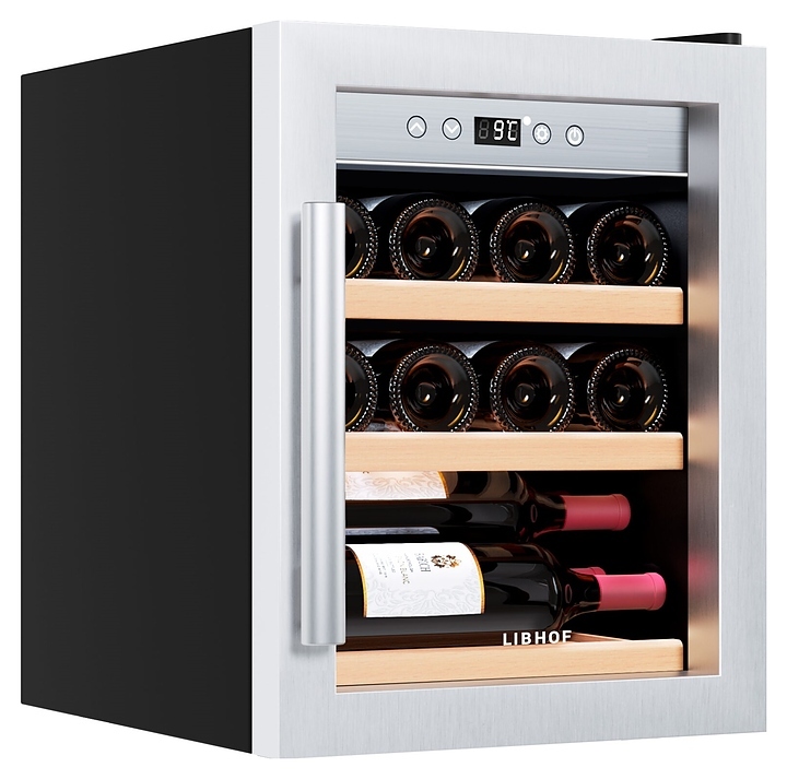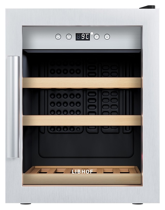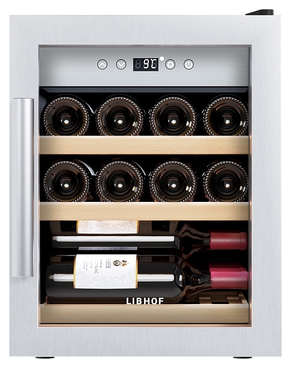 Винный шкаф Libhof Gourmet GQ-12 Silver предназначен для хранения при оптимальных условиях бутилированного вина различных сортов в барах, ресторанах, специализированных магазинах, подсобных складских помещениях, а также в домашних условиях. Модель оснащена монотемпературной холодильной камерой, распашной дверью на внешних петлях, длинной вертикальной рукояткой, прозрачным обзорным стеклом, внутренней сенсорной панелью управления и цифровым дисплеем с белой подсветкой индикации. Корпус выполнен из металла с антикоррозийным покрытием черного цвета, рама двери, внутренняя фасадная панель и рукоятка – из металла с серебристой поверхностью, полки – из массива буковой древесины.