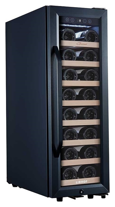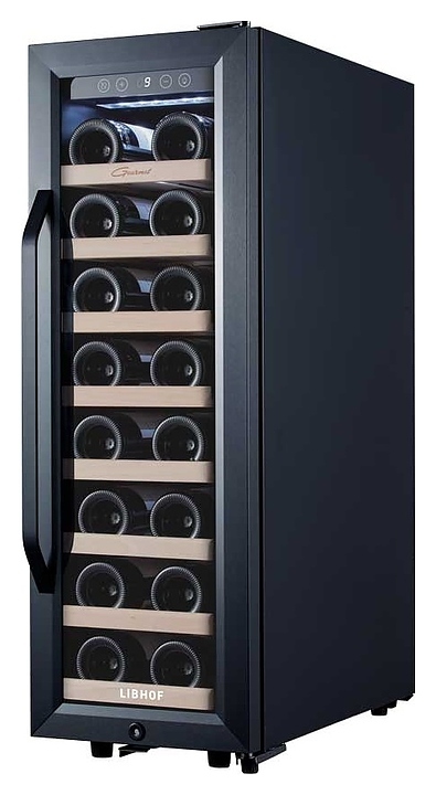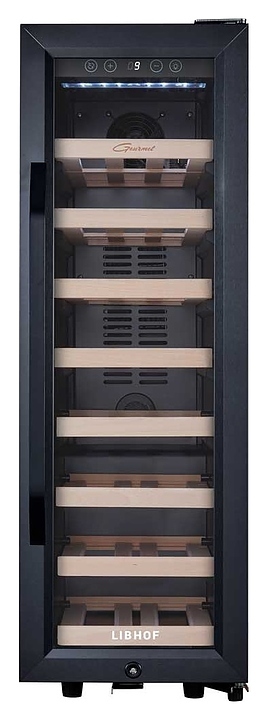 Винный шкаф Libhof Gourmet GZ-21 Tungsten предназначен для хранения при оптимальных условиях бутилированного вина различных сортов в барах, ресторанах, специализированных магазинах, подсобных складских помещениях, а также в домашних условиях. Модель оснащена холодильной камерой с 8 съемными полками, распашной дверью с внешними петлями, длинной рукояткой и зеркальным обзорным стеклом. Корпус выполнен из металла, полки – из массива буковой древесины.