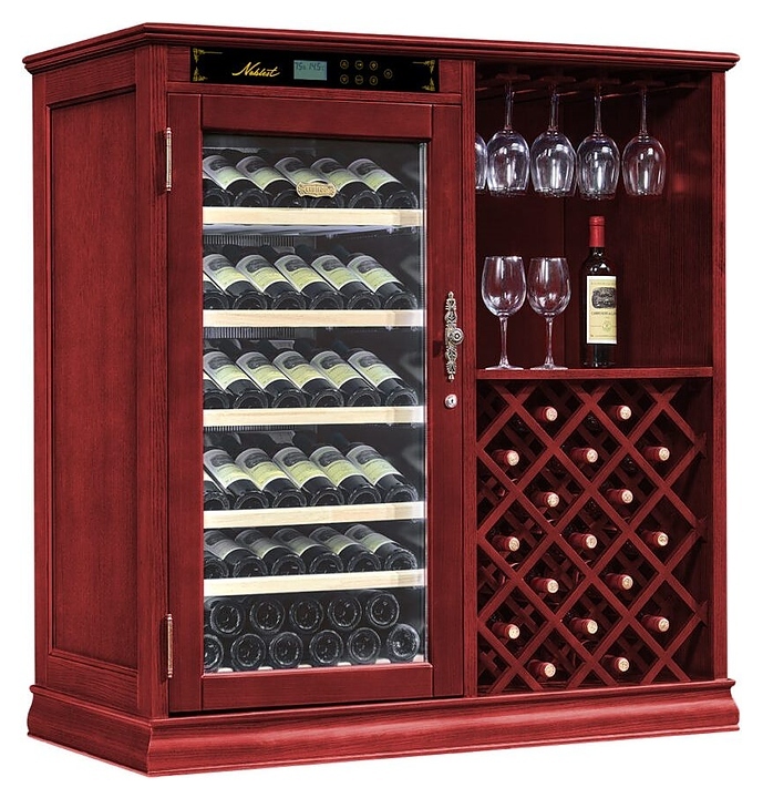 Винный шкаф Libhof Noblest NR-69 предназначен для хранения при оптимальных условиях бутилированного вина различных сортов в барах, ресторанах, специализированных магазинах, подсобных складских помещениях, а также в домашних условиях. Модель оснащена холодильной камерой с 4 демонстрационными полками, полкой с ванночкой и укороченной полкой, распашной дверью на внутренних петлях с замком, прозрачным обзорным стеклом и сенсорной панелью управления с дисплеем. Корпус выполнен из американского дуба, полки - из массива бука.