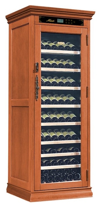 Винный шкаф Libhof Noblest NR-102 предназначен для хранения при оптимальных условиях бутилированного вина различных сортов в барах, ресторанах, специализированных магазинах, подсобных складских помещениях, а также в домашних условиях. Модель оснащена холодильной камерой со съемной полкой и 6 демонстрационными, полкой с ванночкой и укороченной полкой, распашной дверью на внутренних петлях с кодовым замком, прозрачным обзорным стеклом и сенсорной панелью управления с дисплеем. Корпус выполнен из американского дуба, полки - из массива бука.
