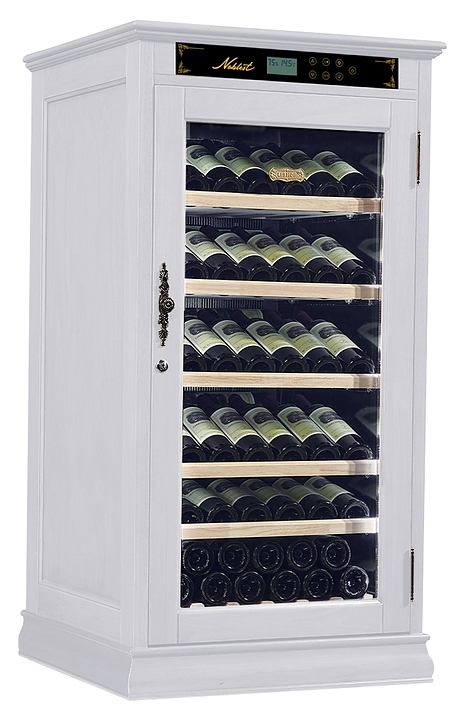Винный шкаф Libhof Noblest NR-69 предназначен для хранения при оптимальных условиях бутилированного вина различных сортов в барах, ресторанах, специализированных магазинах, подсобных складских помещениях, а также в домашних условиях. Модель оснащена холодильной камерой с 4 демонстрационными полками, полкой с ванночкой и укороченной полкой, распашной дверью на внутренних петлях с замком, прозрачным обзорным стеклом и сенсорной панелью управления с дисплеем. Корпус выполнен из американского дуба, полки - из массива бука.