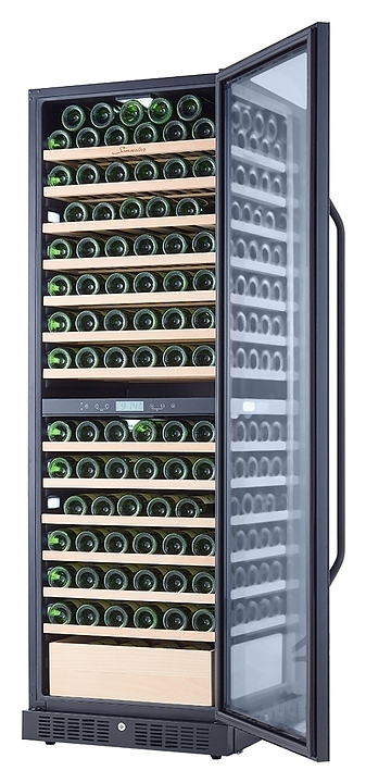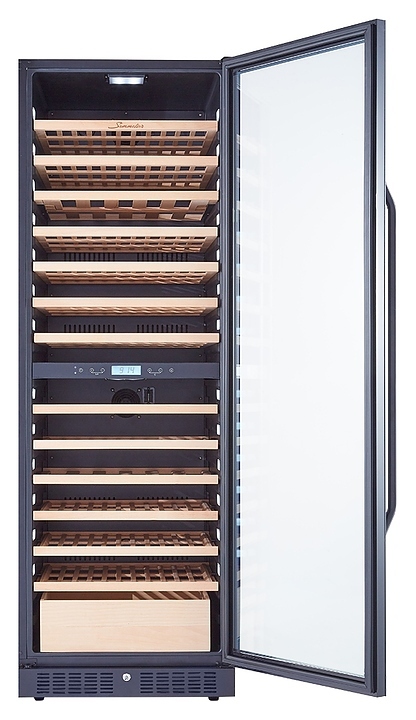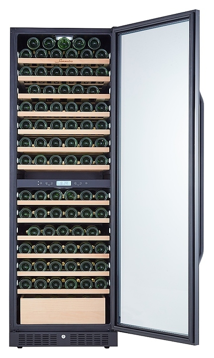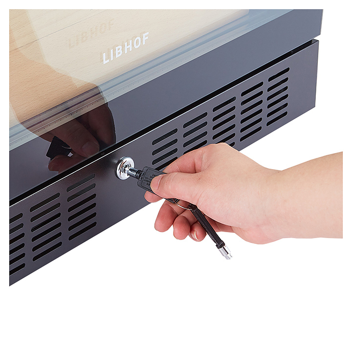Винный шкаф Libhof Sommelier SED-161 предназначен для охлаждения вина перед подачей, длительного хранения или созревания винной коллекции в барах, ресторанах, специализированных магазинах, подсобных складских помещениях или в домашних условиях. Модель оснащена холодильной камерой холодильной камерой с 2 температурными зонами, демонстрационной полкой, ящиком, 11 съемными полками, запираемой на ключ распашной дверью на внешних петлях с ручкой, прозрачным обзорным остеклением, сенсорной панелью управления в средней части камеры и дисплеем с гигрометром. Корпус выполнен из металла, полки - из натурального бука.